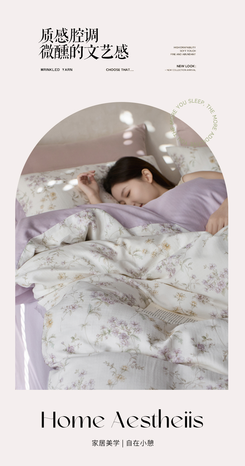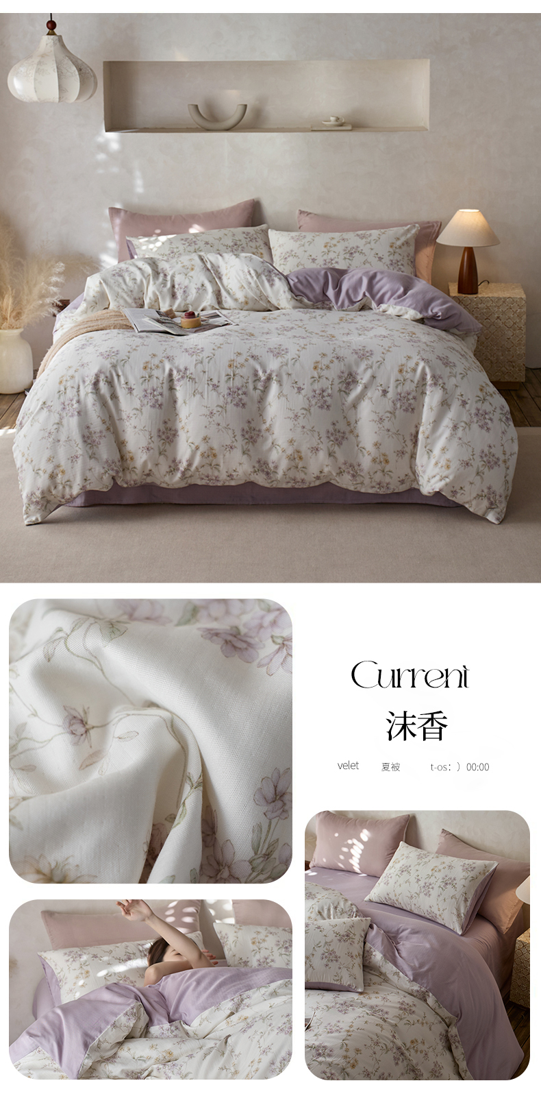时年家纺 2025零汗纱™数码印花系列套件 沫香