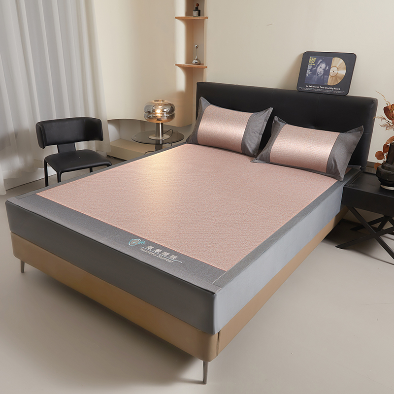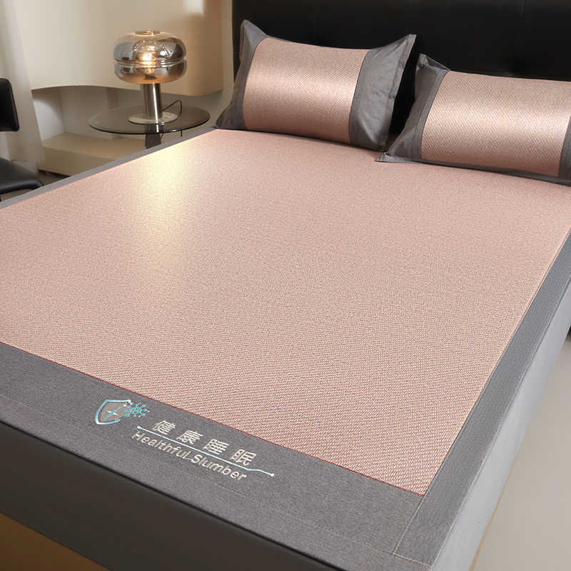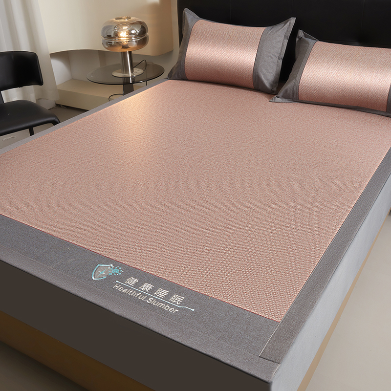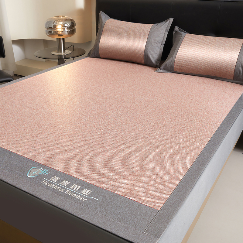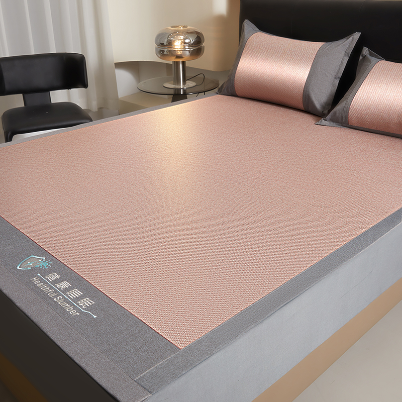 (总)席都 2024新款冰藤席床席三件套-三明治-冰藤席系列,灰,金,绿,粉,蓝