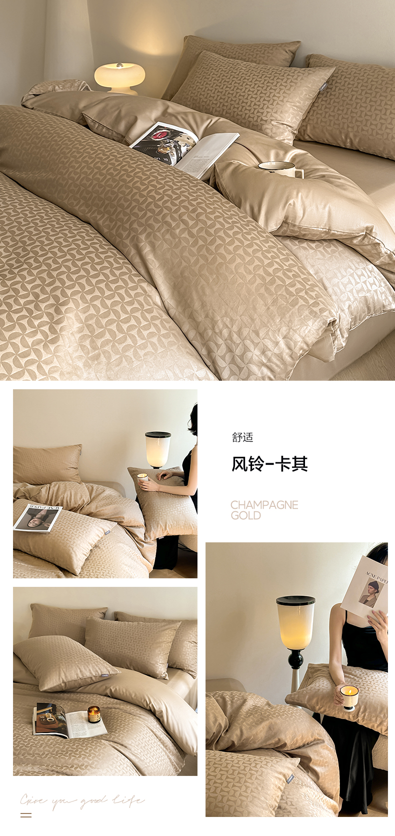 当前位置: 91家纺网 > 商品网购 > 床品套件 > 四件套 > 全棉普通四件套 > 2025新款60s长绒棉提花四件套系列1 风铃-卡其
