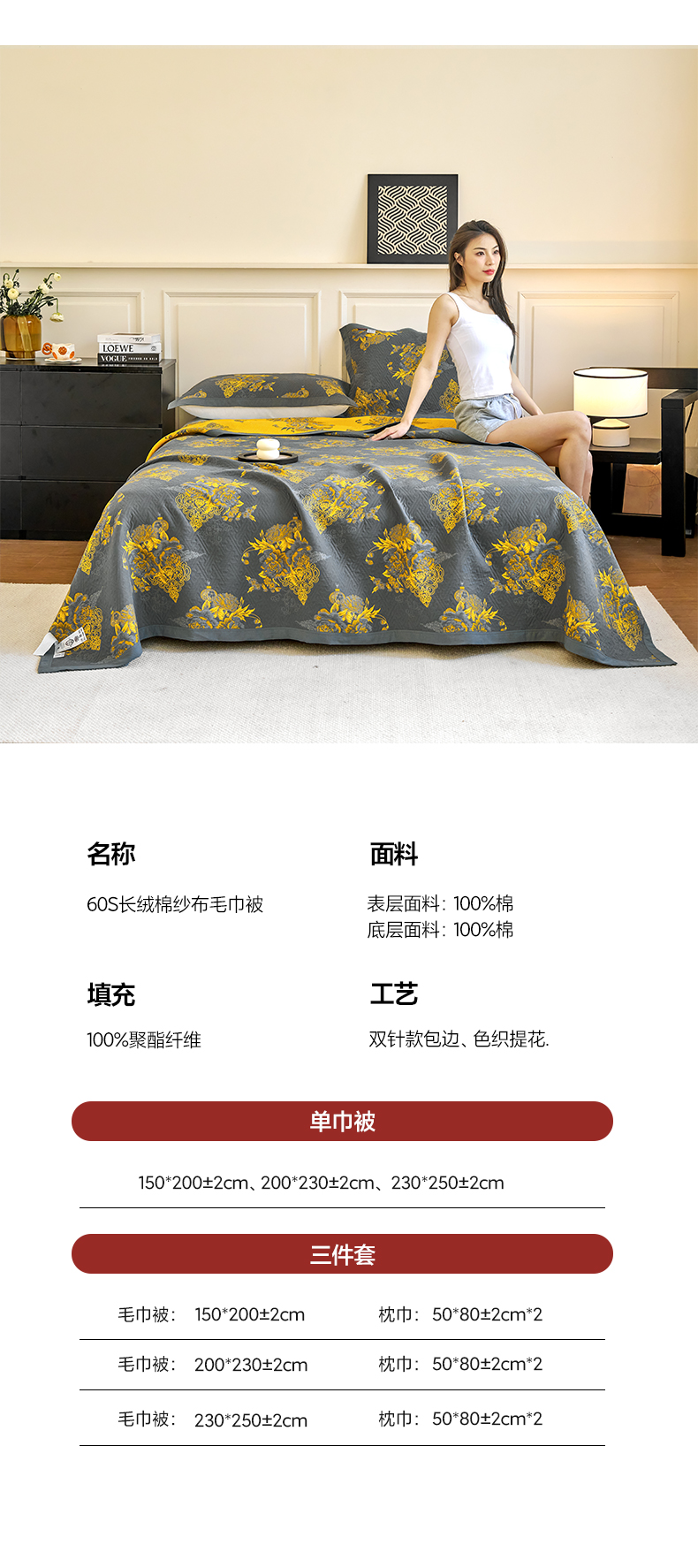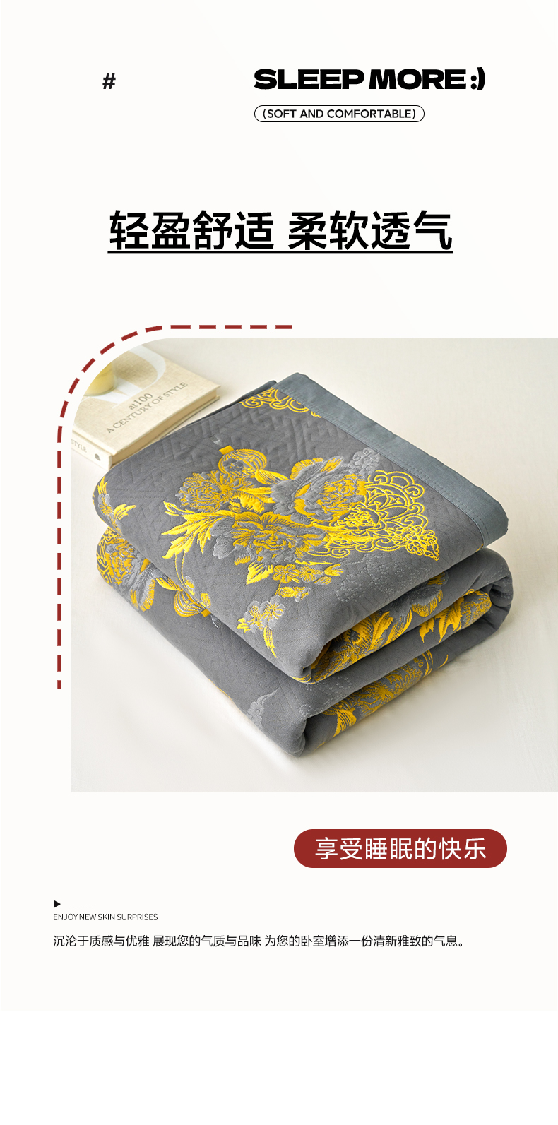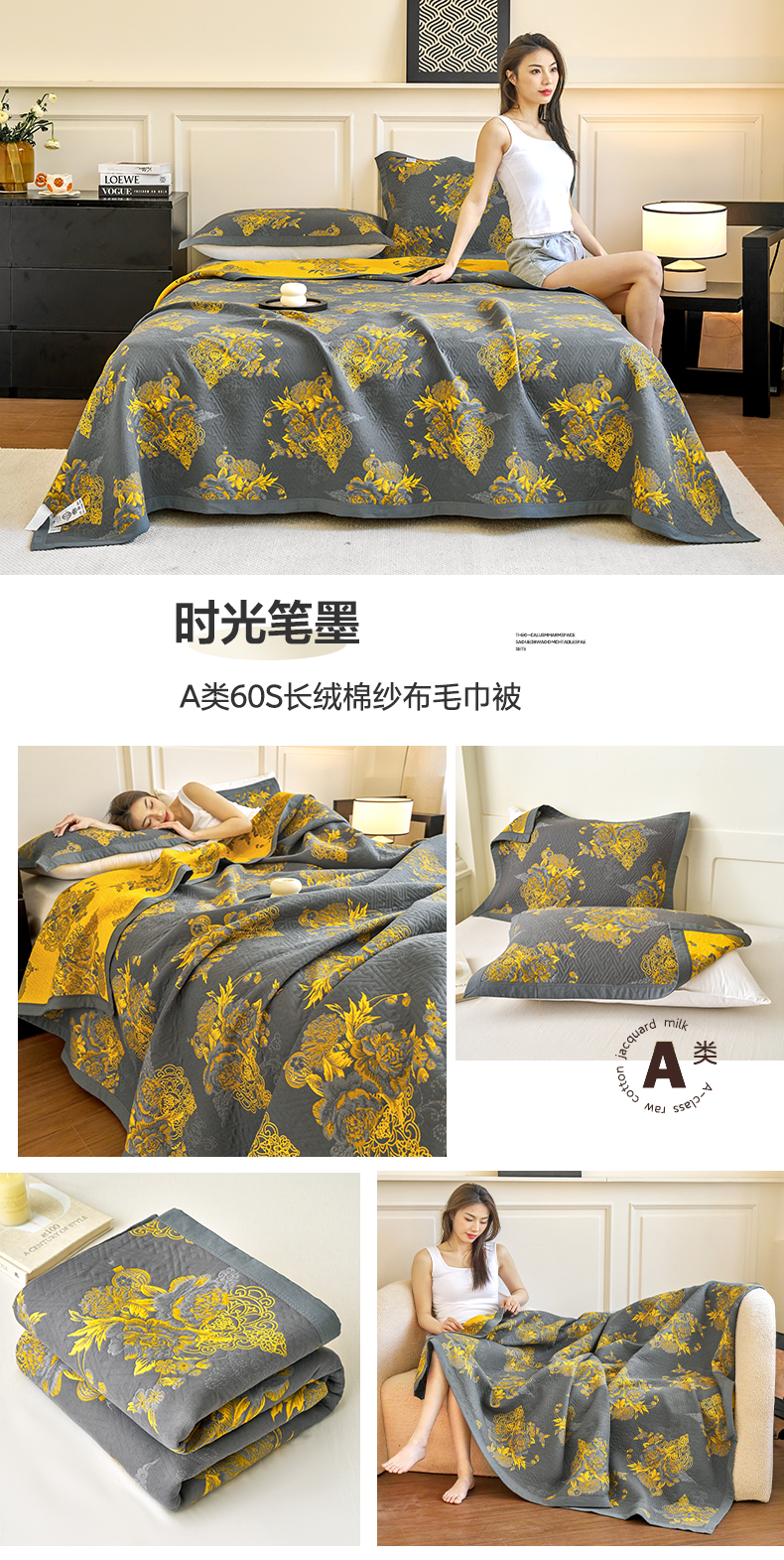 • 91家纺网 家纺一手货源 找家纺 棠薇家纺 2025新款60S长绒棉纯棉纱布毛巾被 时光笔墨