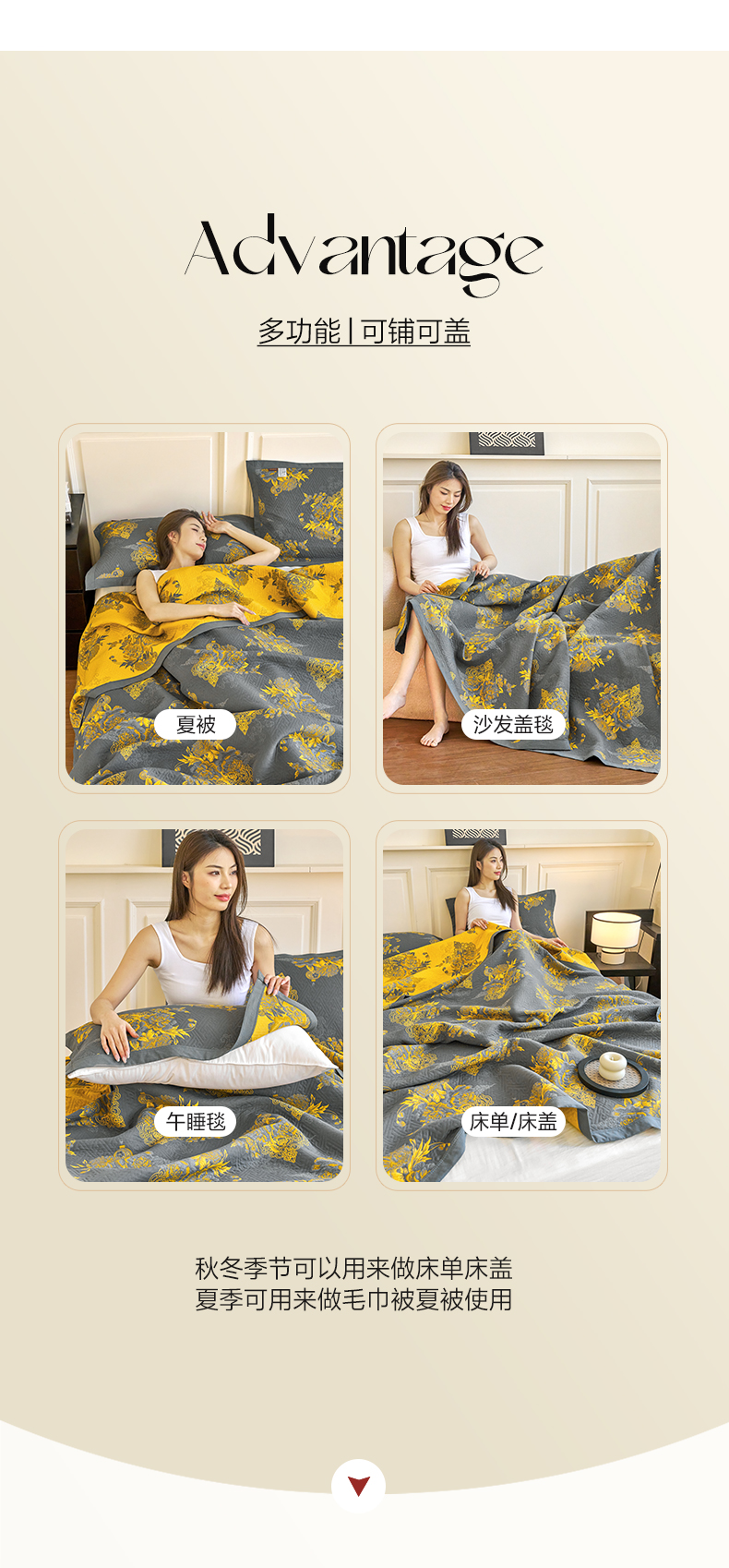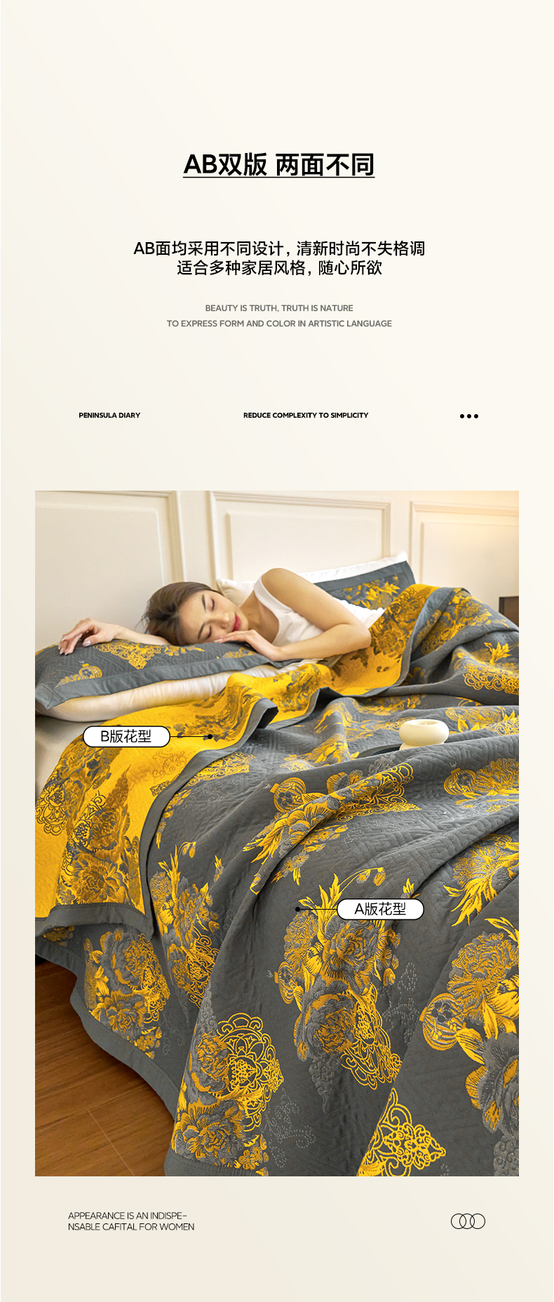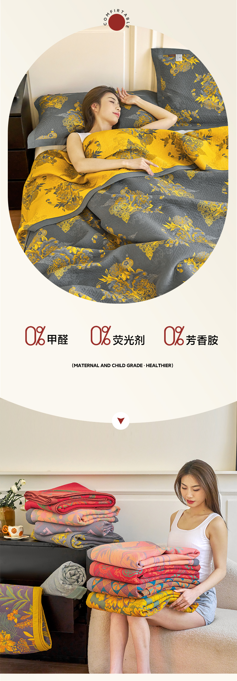 • 91家纺网 家纺一手货源 找家纺 棠薇家纺 2025新款60S长绒棉纯棉纱布毛巾被 时光笔墨