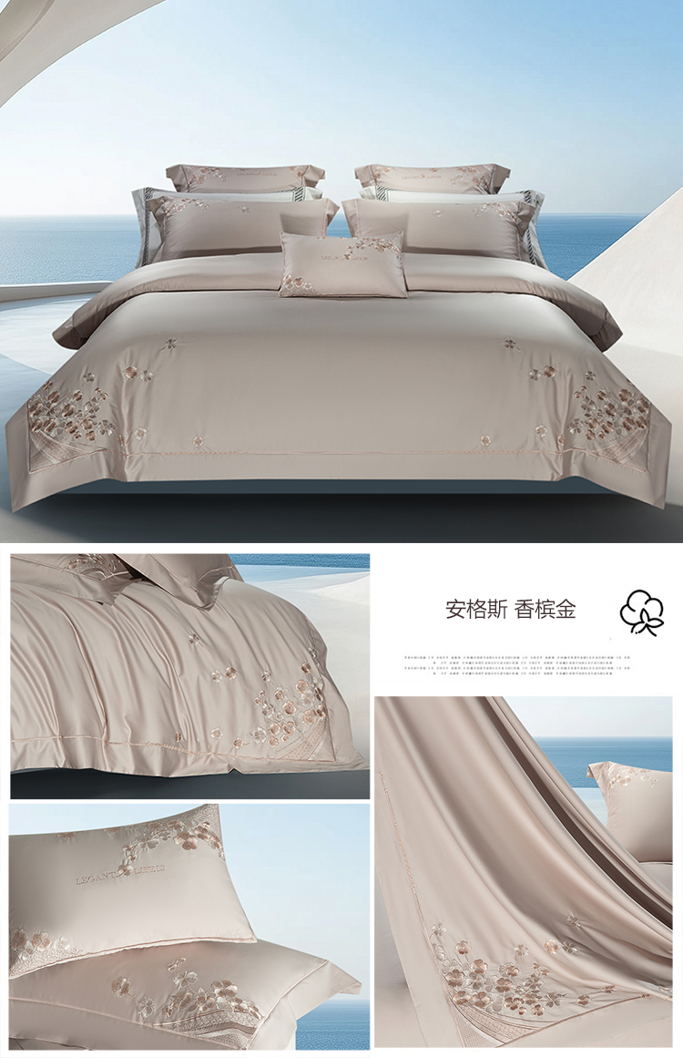 (总)诗黛尔 2025秋冬新款长绒棉刺绣四件套-罗意威系列,落樱粉,水晶蓝,卡其色,绅士灰,香槟金,油果绿