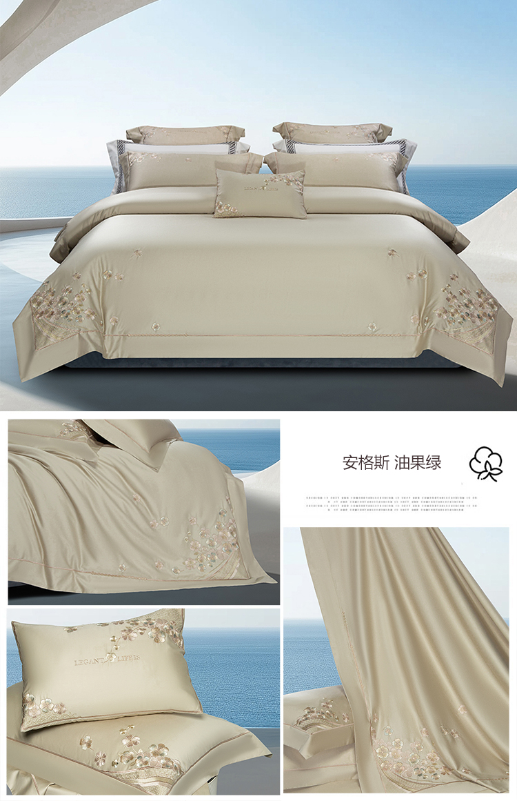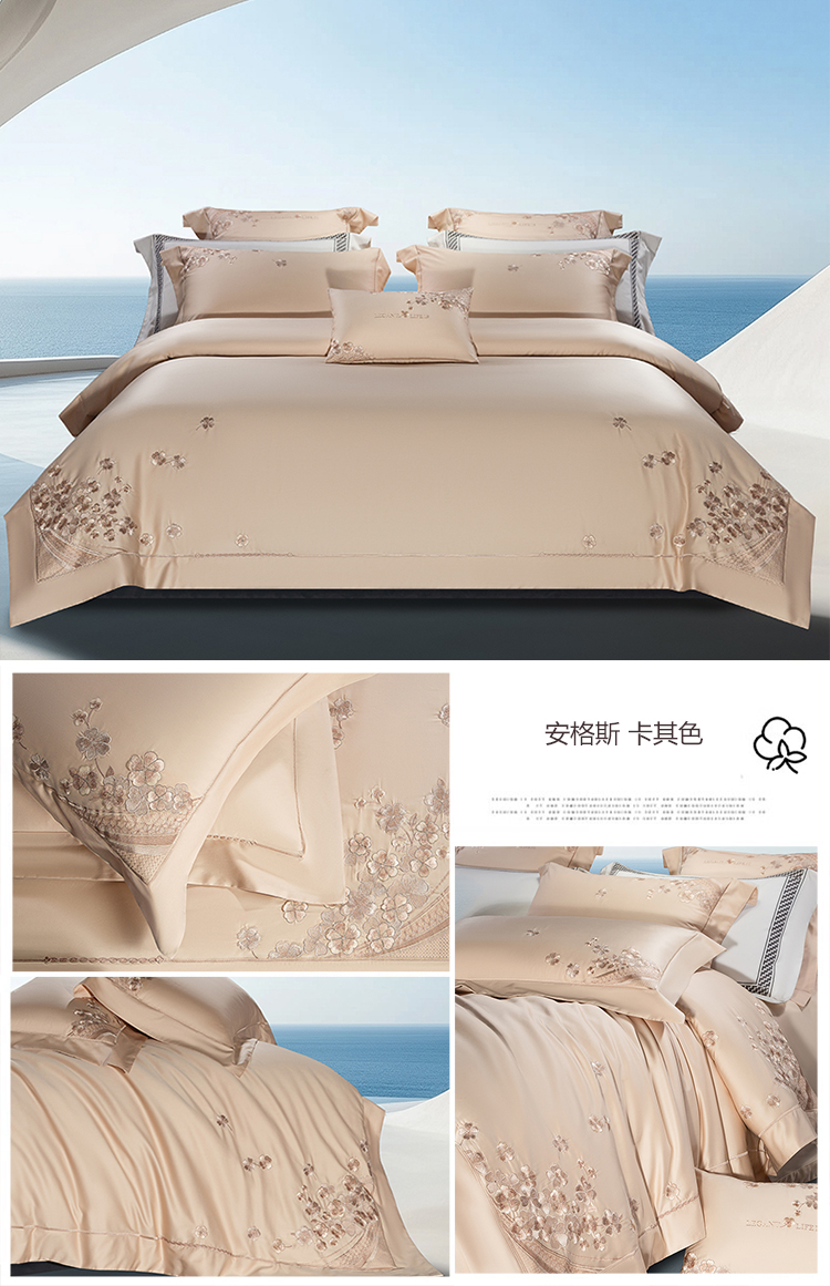 (总)诗黛尔 2025秋冬新款长绒棉刺绣香缇卡系列四件套,卡其色,落樱粉,南瓜橘,绅士灰,水晶兰,油果绿
