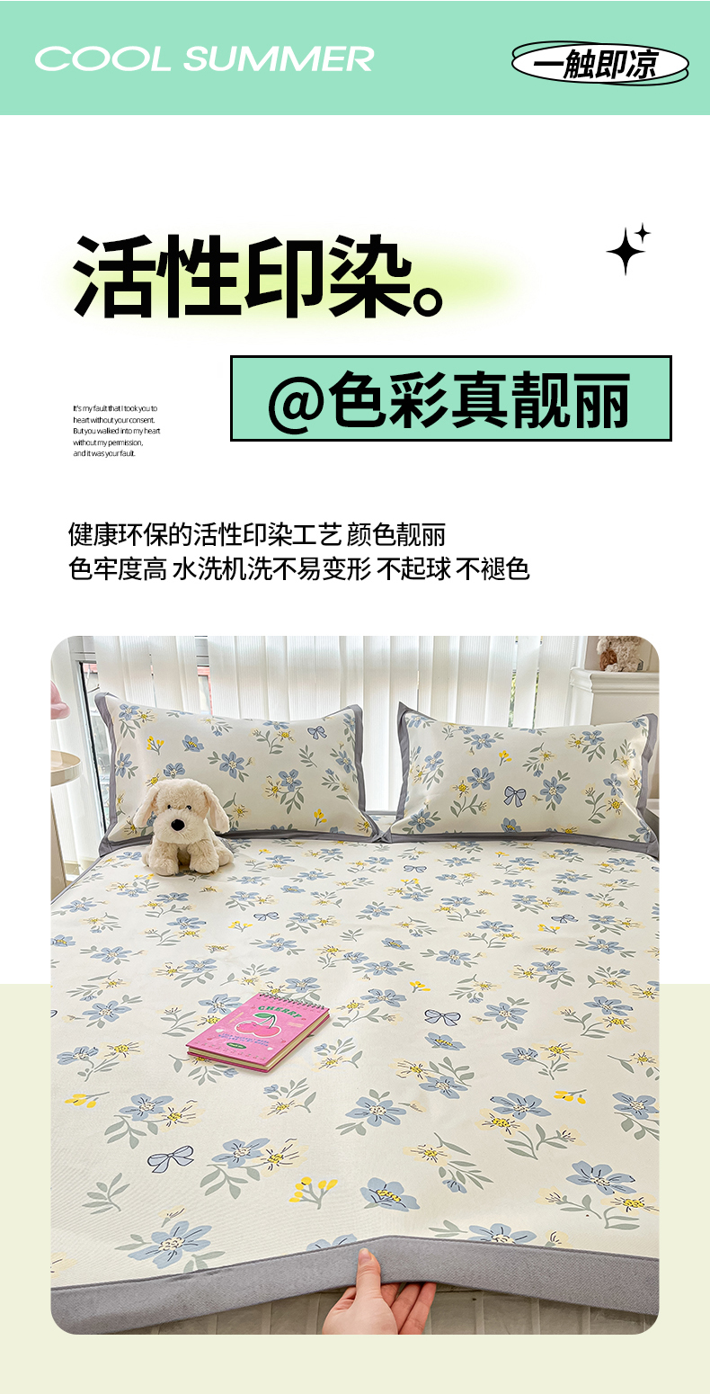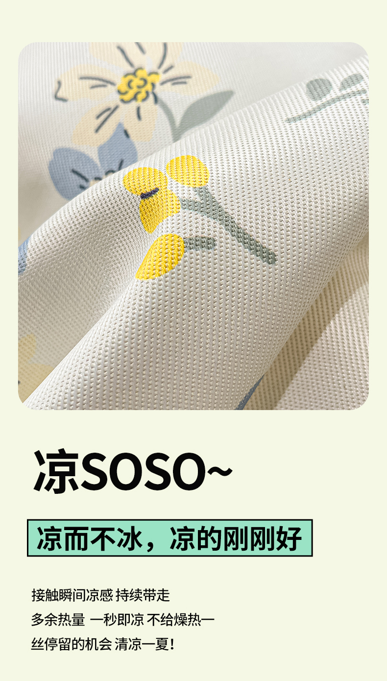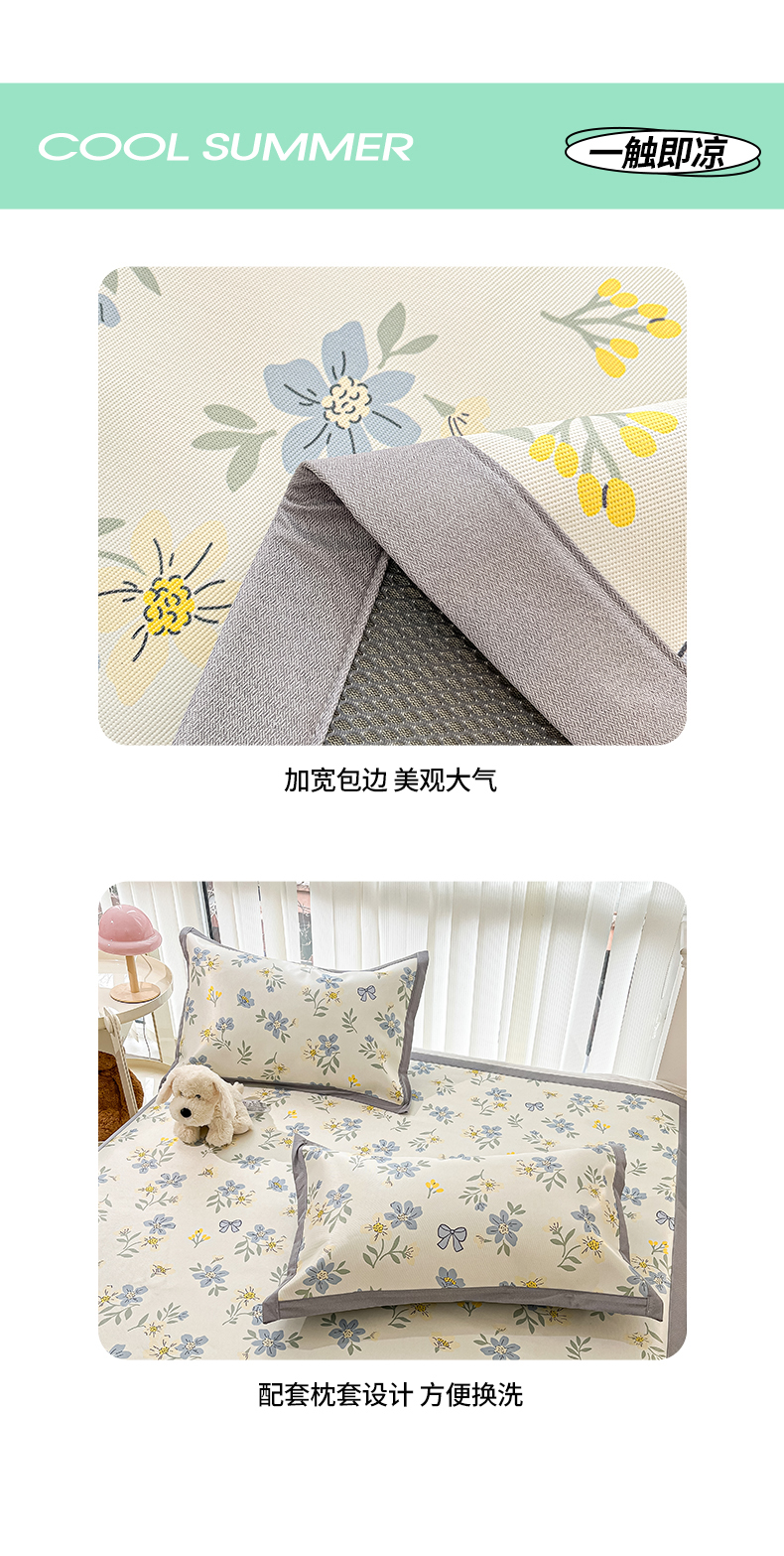 商品名称:川悦生活 2025新款600D立体宽边冰丝印花凉席 花月青啬