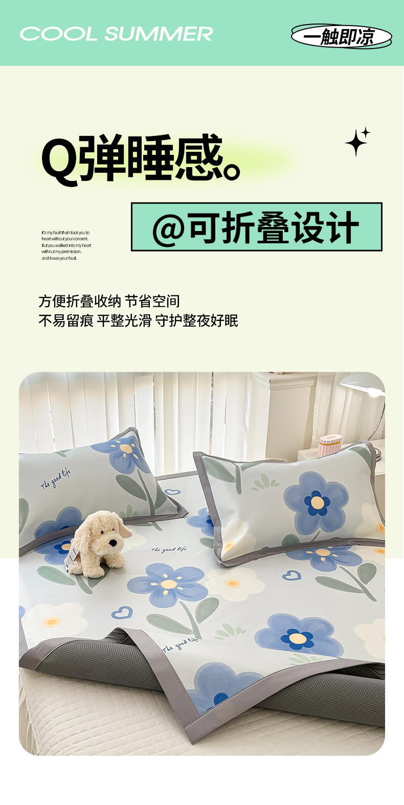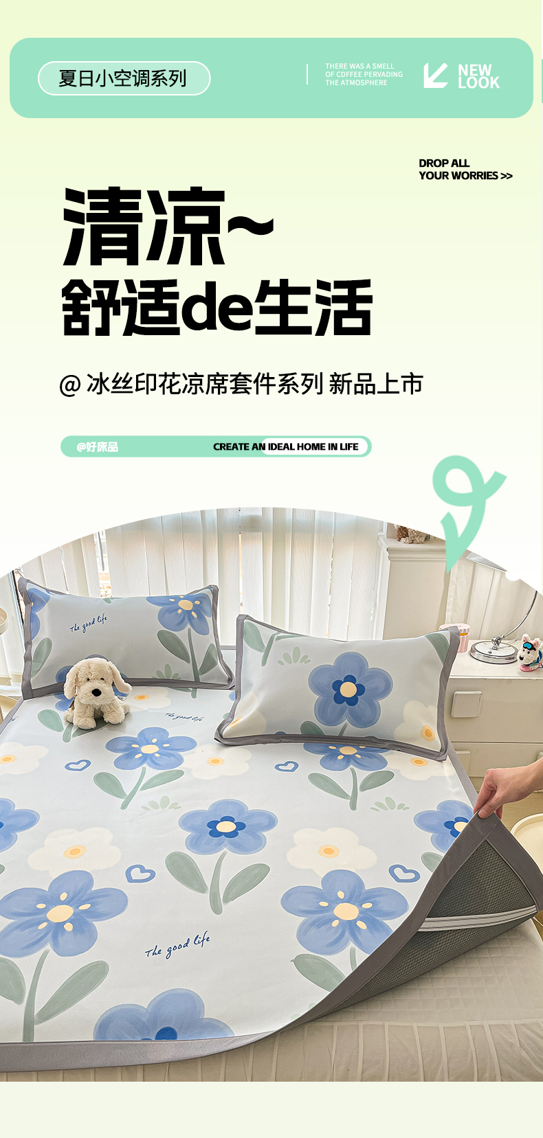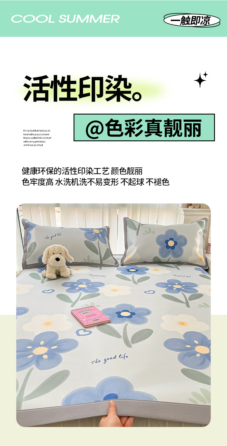 商品名称:川悦生活 2025新款600D立体宽边冰丝印花凉席 南风夏余