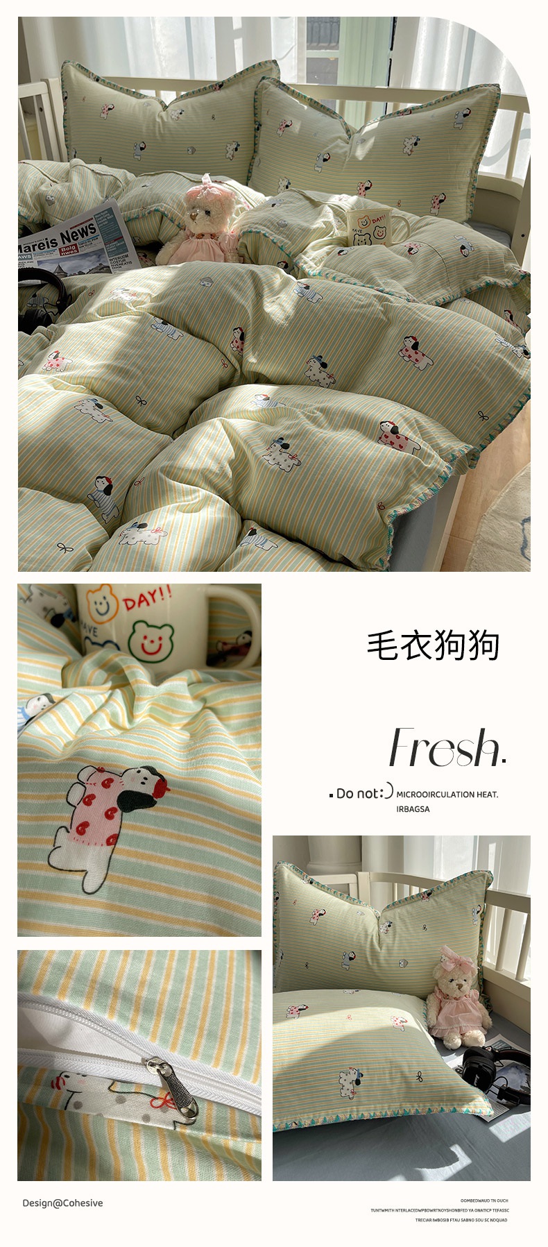 (总)瑞莱 2025夏季新款全棉纯棉有氧双层纱四件套,格子狗(粉),春日女孩,格子狗(蓝),功夫熊猫,何枝小兔,花园小狗,萝莉兔,萌萌狮,梦幻花园兔,少女象(绿),熊孩子,原宿小兔