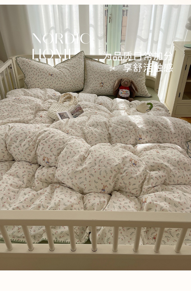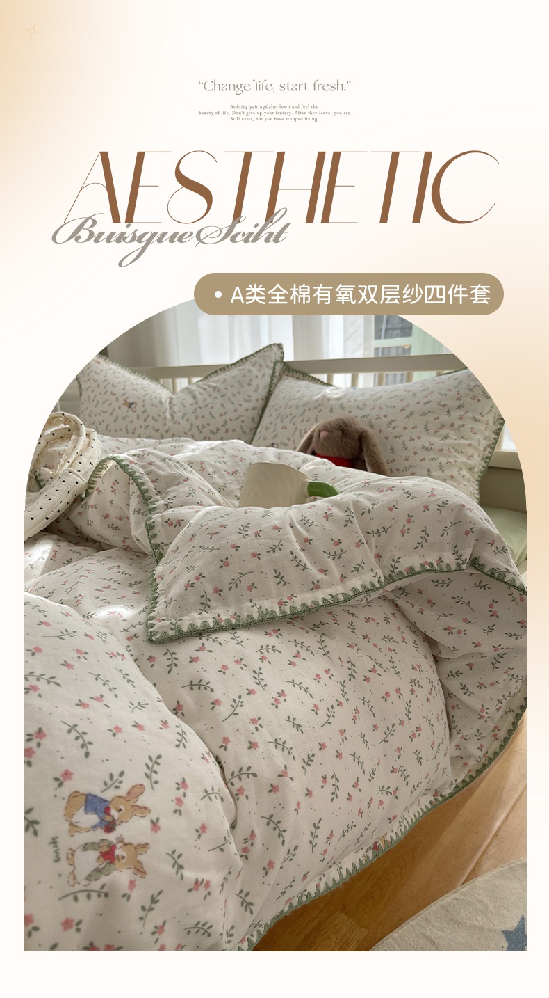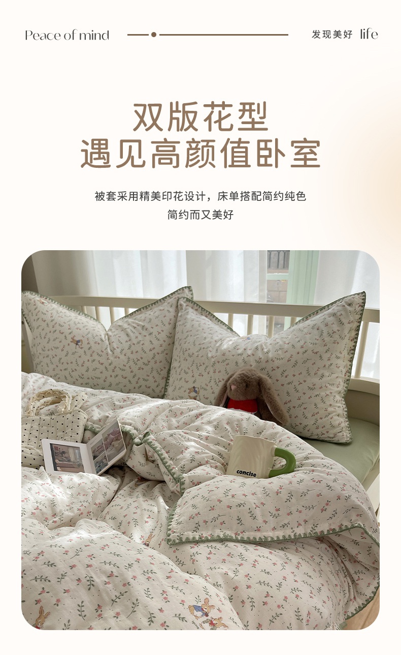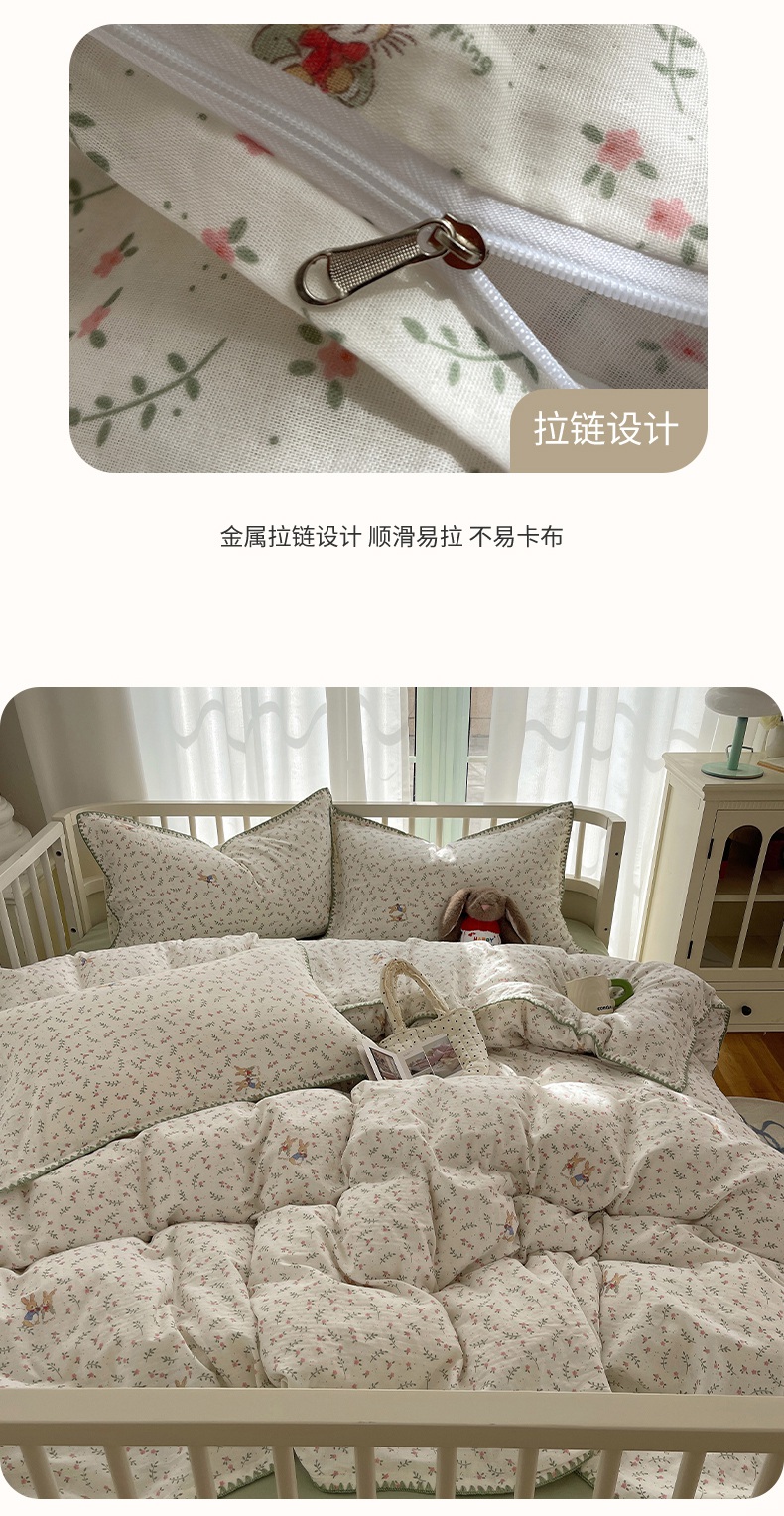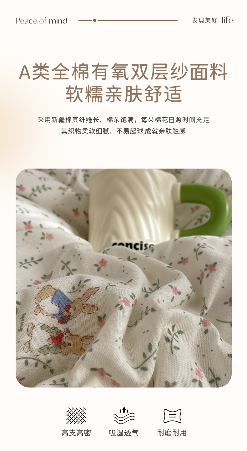 商品名称:瑞莱 2025新款13372全棉有氧双层纱四件套 樱花小兔
