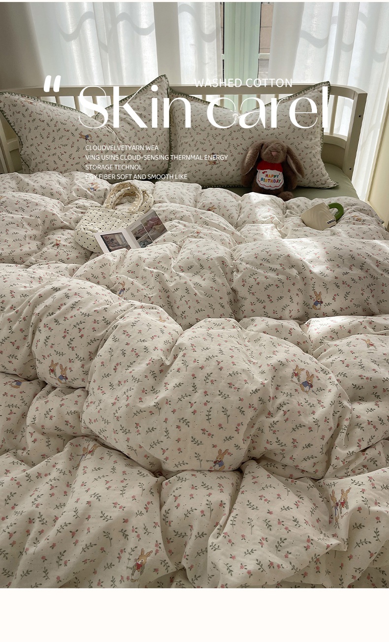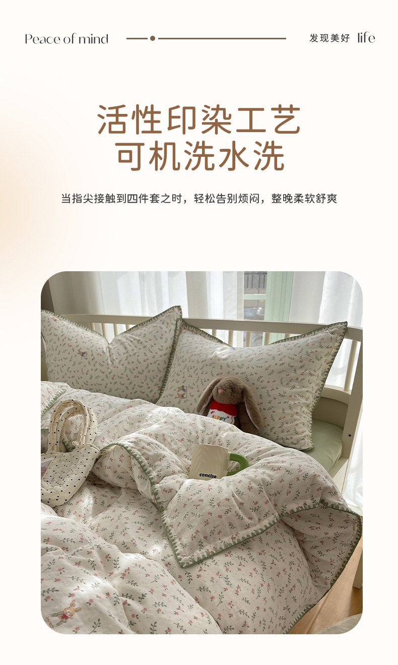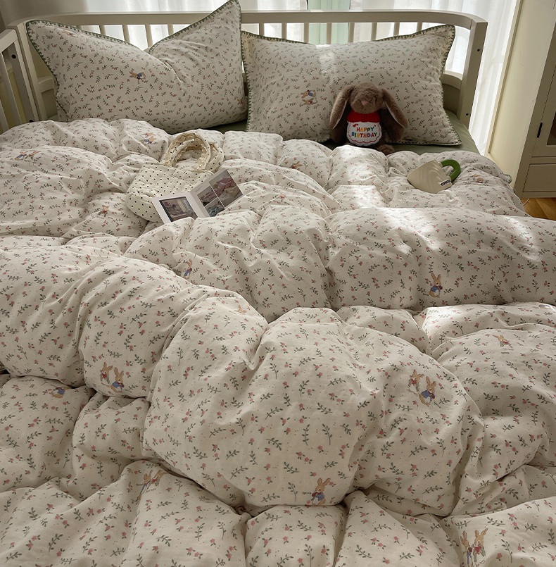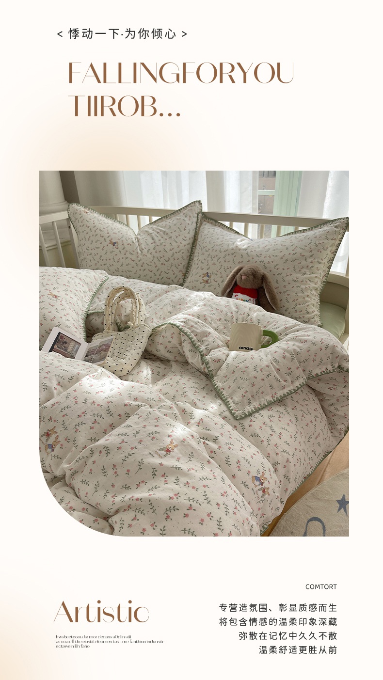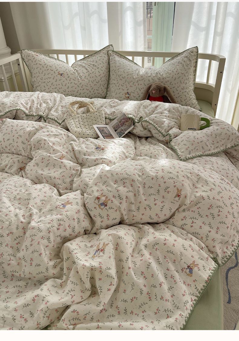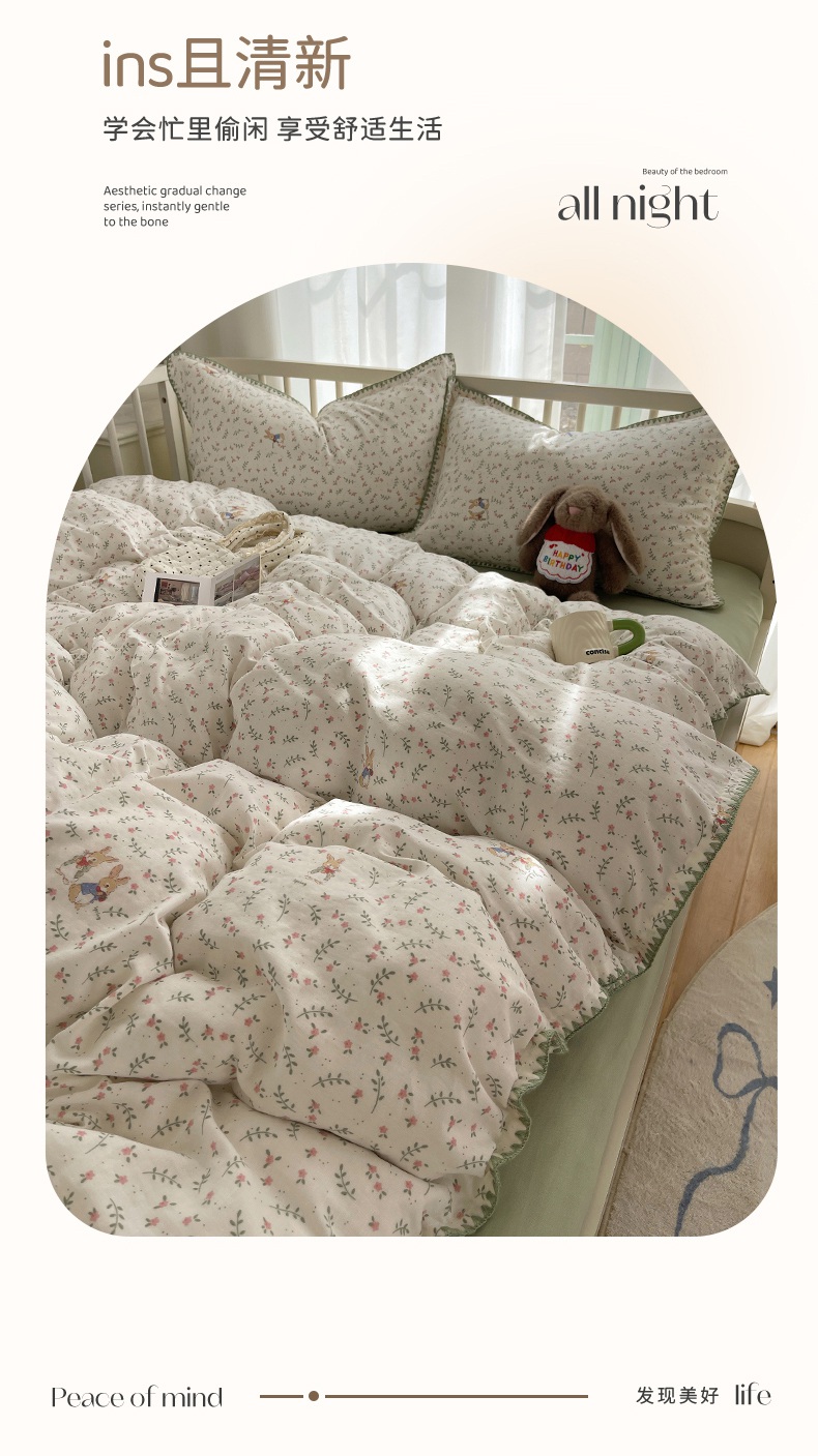 商品名称:瑞莱 2025新款13372全棉有氧双层纱四件套 樱花小兔