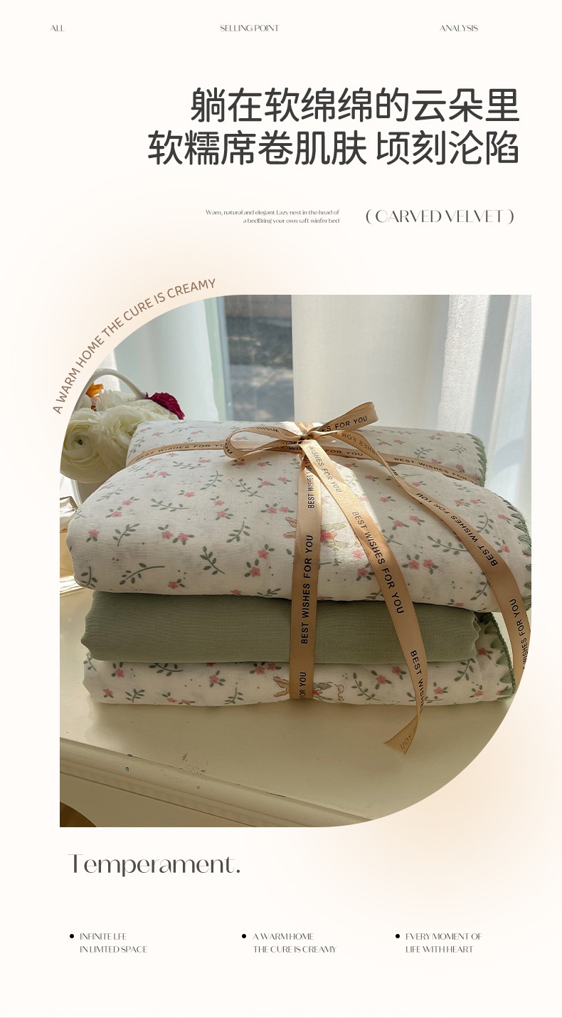 (总)瑞莱 2025秋冬高克重韩系蕾丝花边雕花绒四件套,邂逅,郁金香,艾莎,蜜夏,同心结,悠然