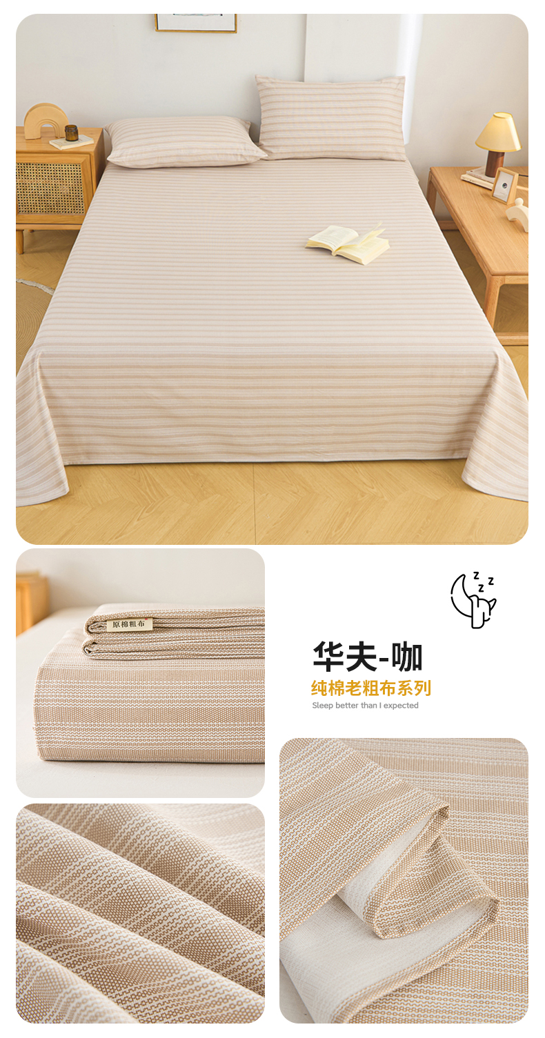 • 91家纺网 家纺一手货源 找家纺 九亭家纺 2025新款A类全棉老粗布床单 华夫-咖
