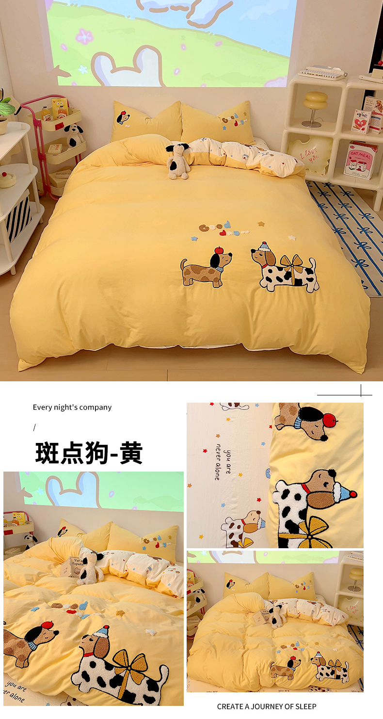 当前位置: 91家纺网 > 商品网购 > 床品套件 > 四件套 > 毛巾绣四件套 > 易辰美家纺2025新款超柔水洗棉印花毛巾绣四件套 斑点狗-黄