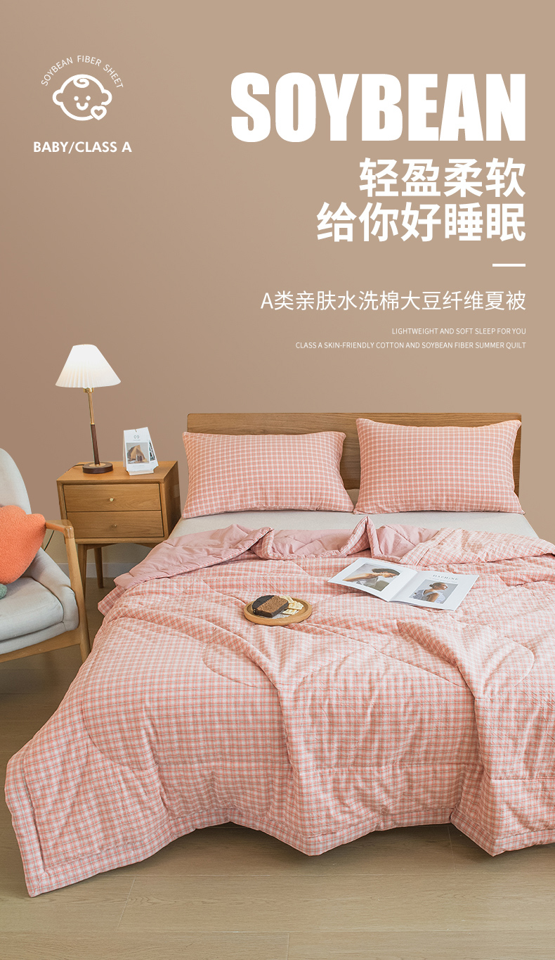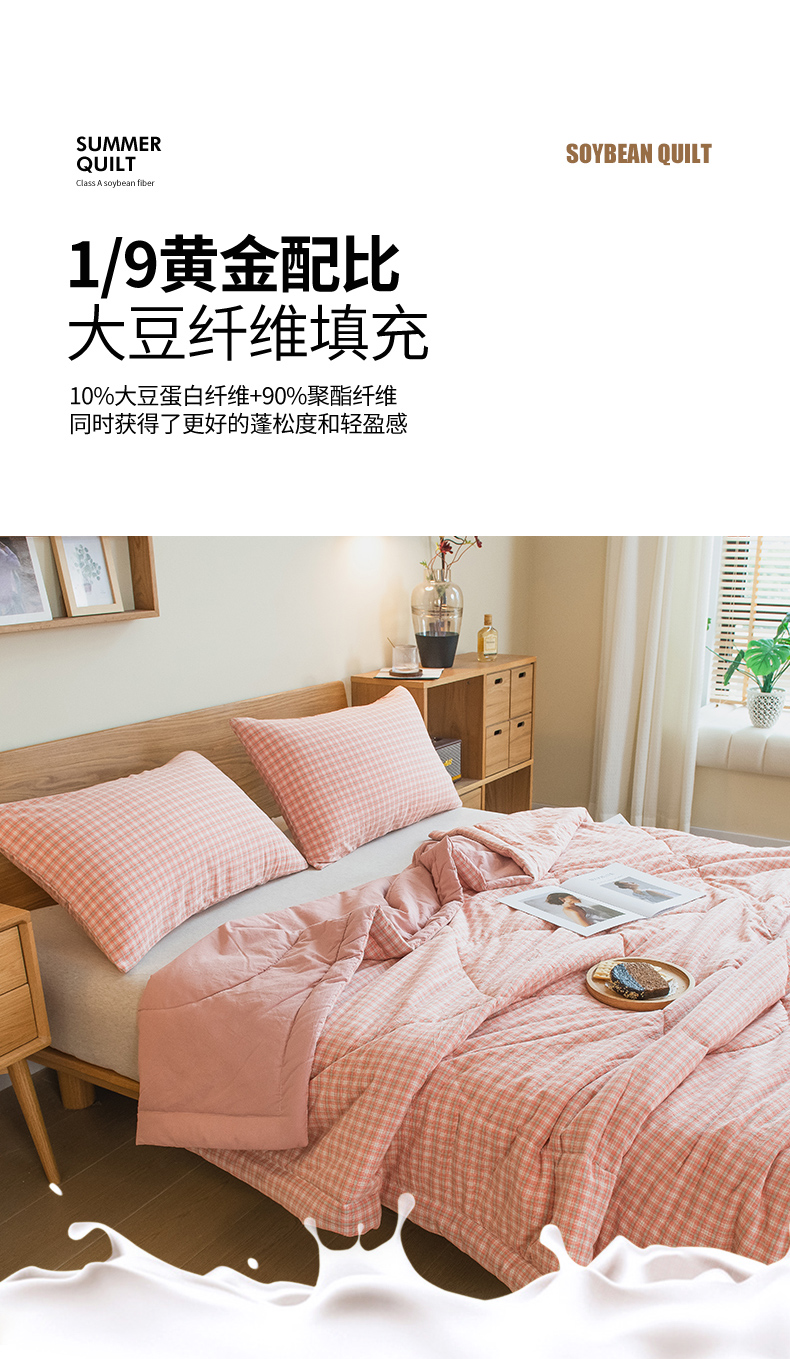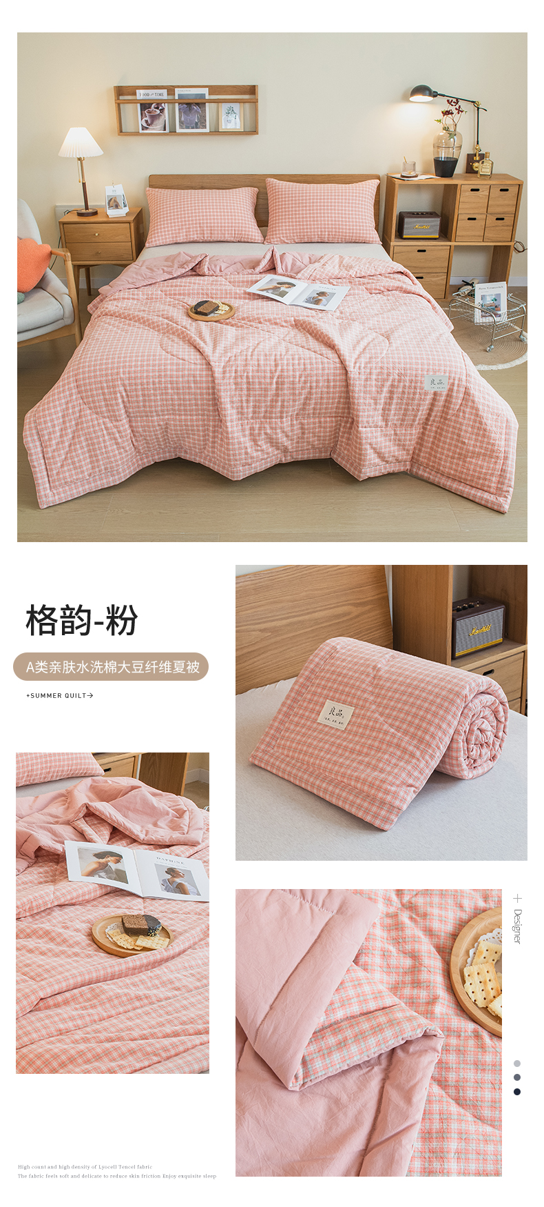 商品名称:慕木家纺 2025春夏新款A类亲肤水洗棉大豆纤维夏被夏凉被空调被 格韵-粉