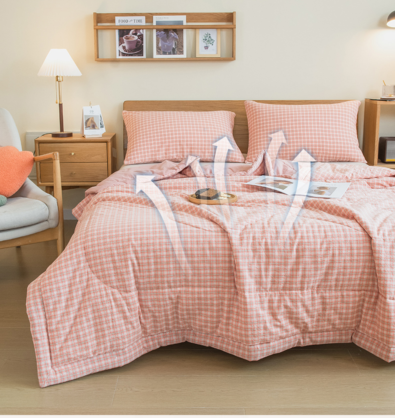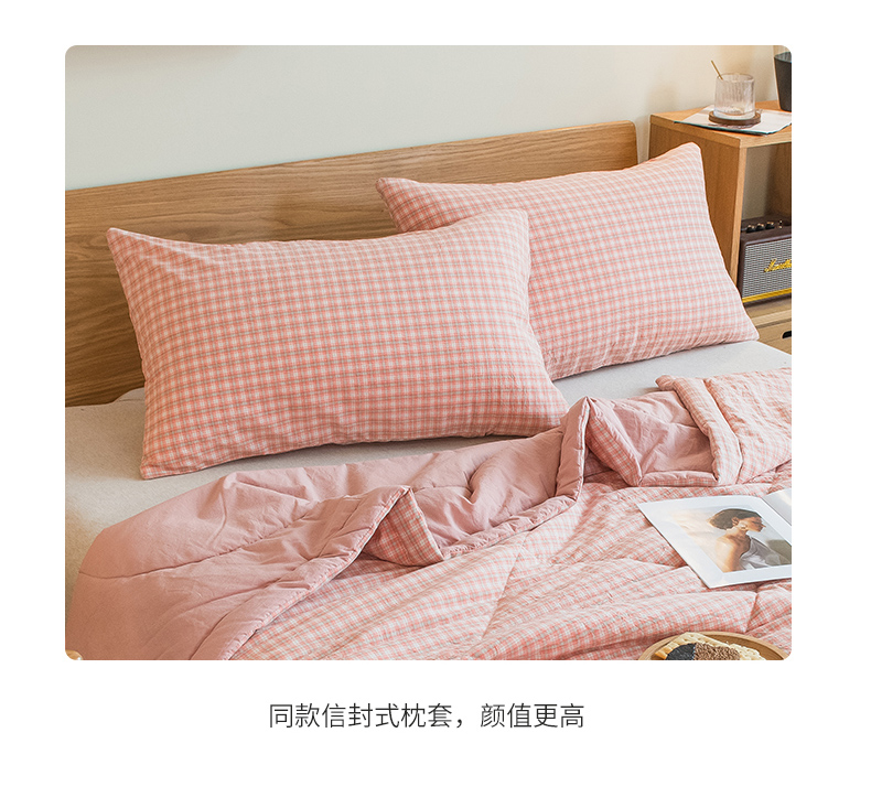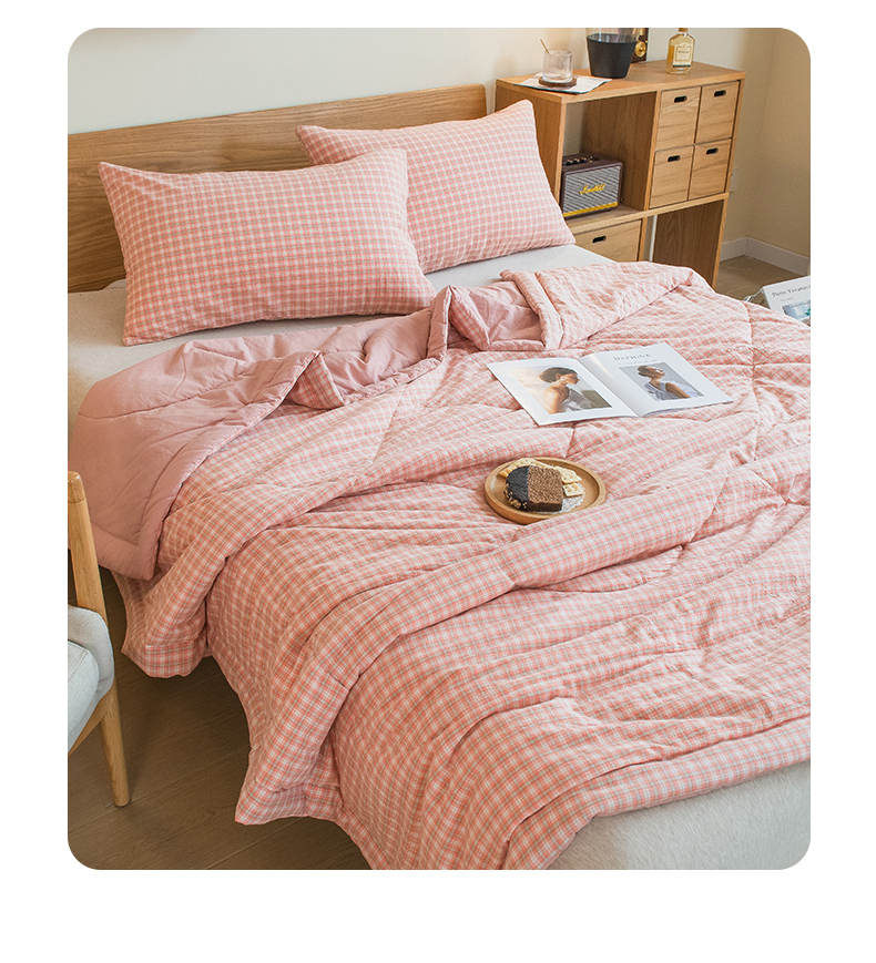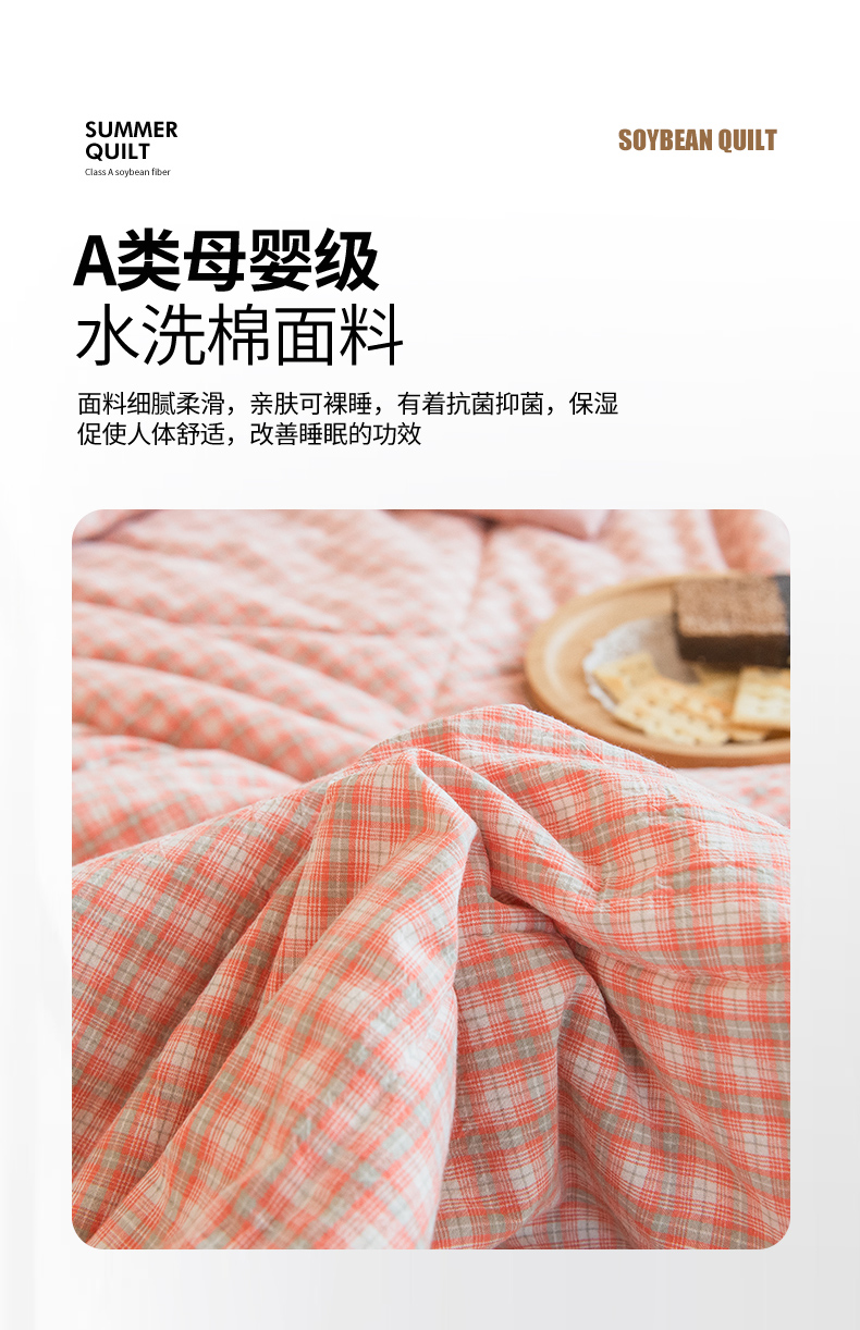商品名称:慕木家纺 2025春夏新款A类亲肤水洗棉大豆纤维夏被夏凉被空调被 格韵-粉
