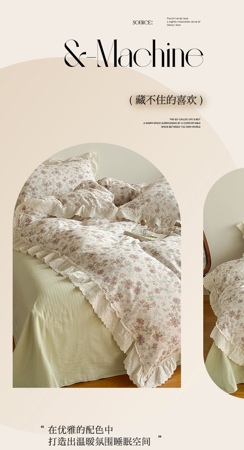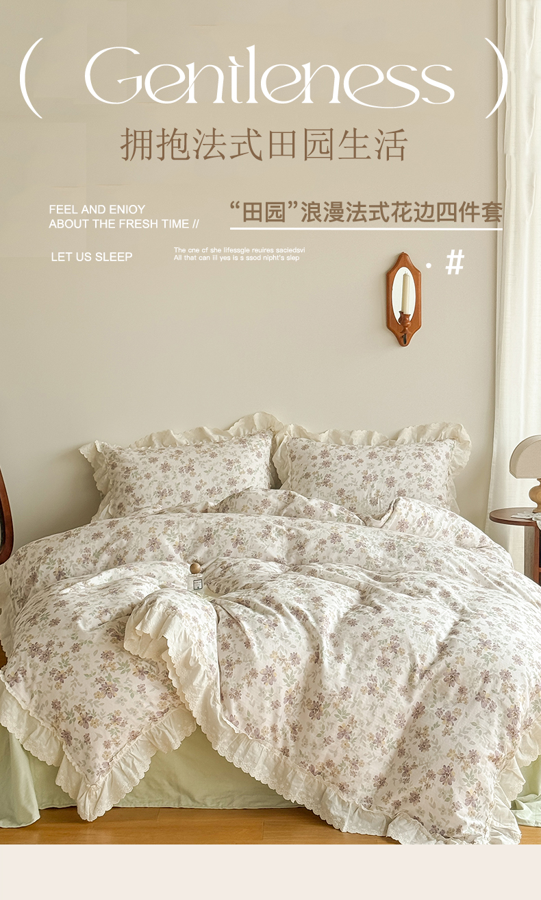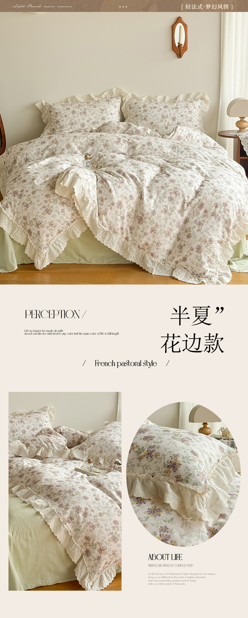 (总)塔塔 2025新款法式田园全棉针织棉花边印花夏被,花奈,假日,洛可可,漫恋,木槿,浅汐,小樱桃,洋兰