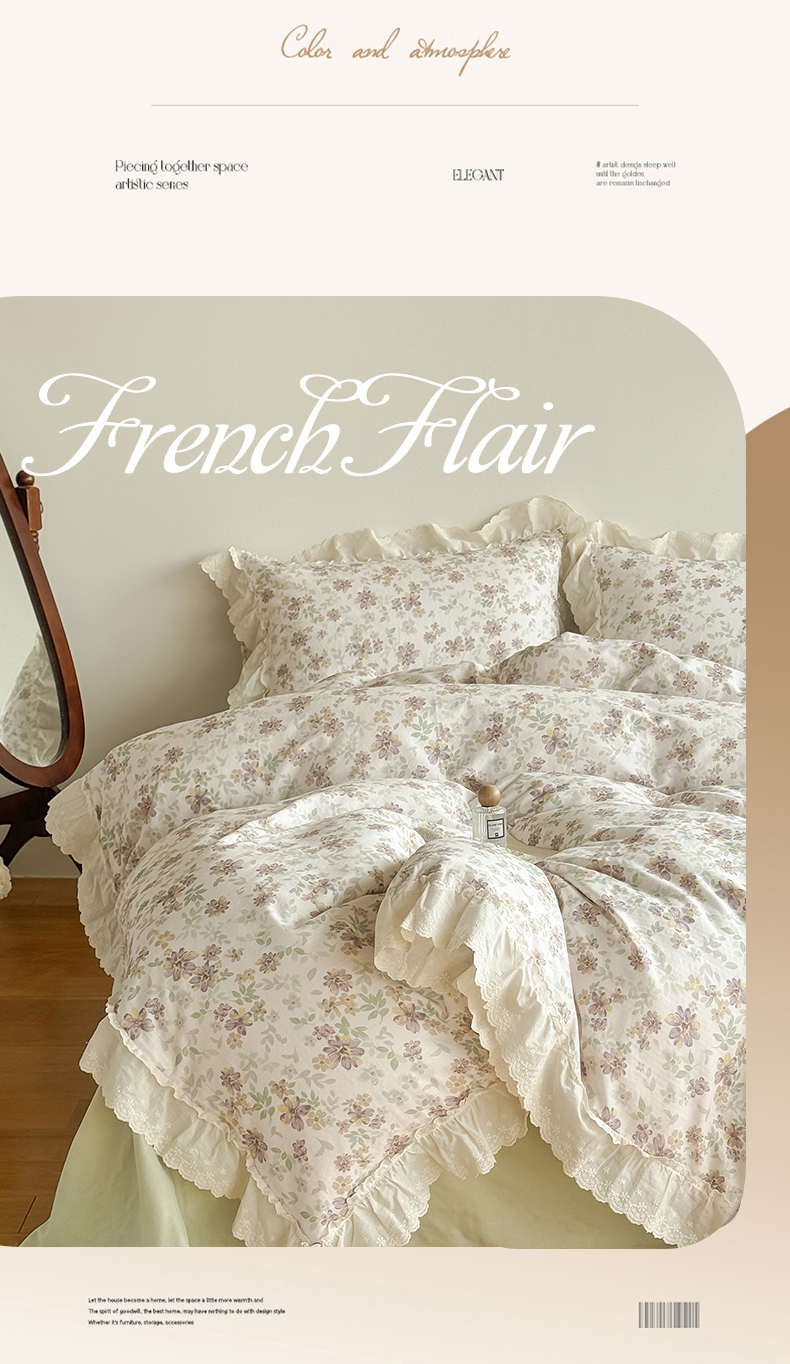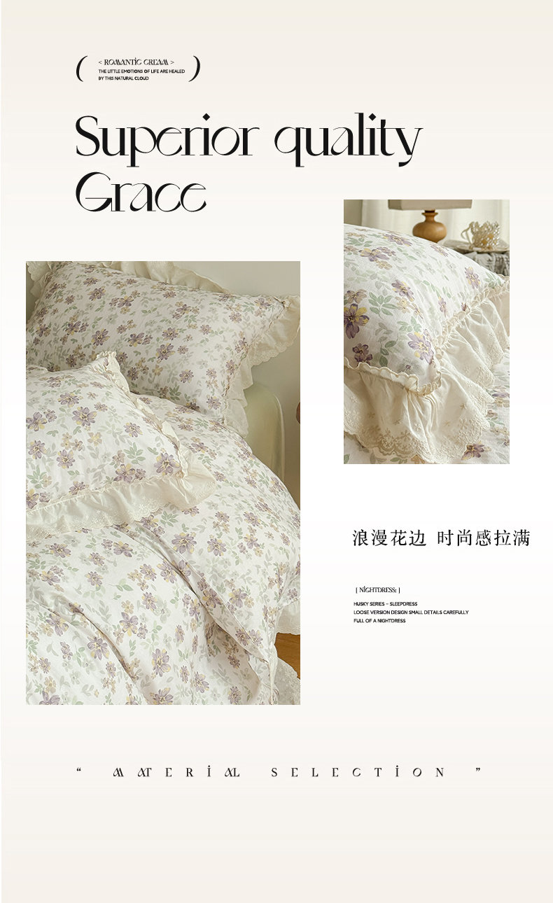 商品名称:TT.one 塔塔家居 2025新款全棉双层纱镂空立体花边系列 花边款·半夏