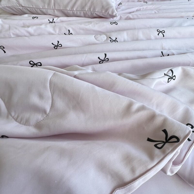 商品名称:棉生活家纺 2025新款ins小清新水洗冰丝夏被四件套 蜜桃乌龙 粉
