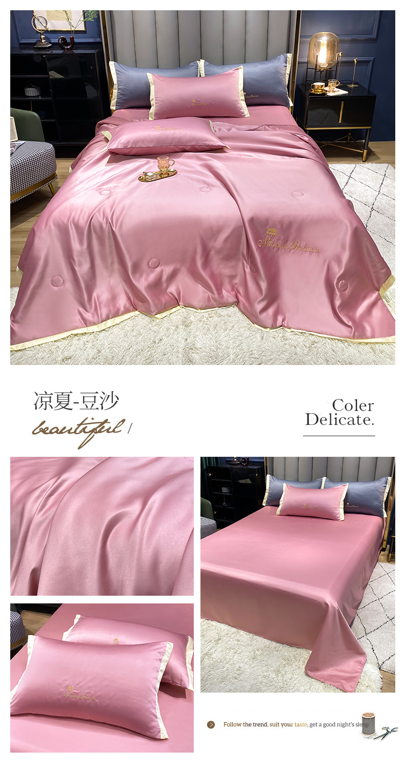 (总)新22 经年2025年 水洗真丝冰丝天丝韩版夏被四件套直播爆款浅夏系列,浅夏-灰夏被,浅夏-灰玉夏被,浅夏-玫蓝夏被,浅夏-蓝灰夏被,浅夏-香槟夏被,浅夏-香草灰夏被