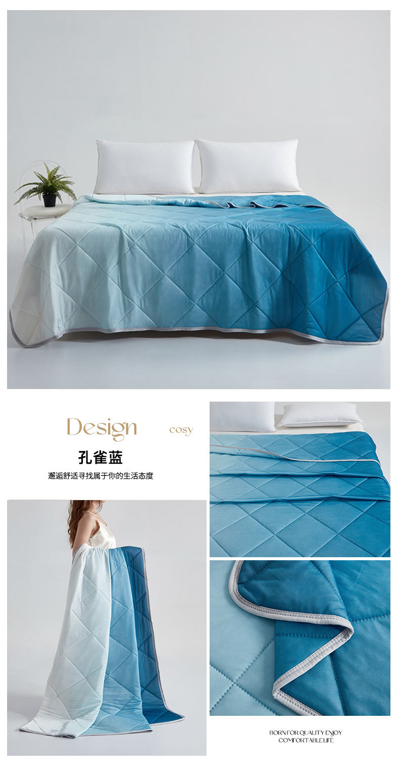 商品名称:安琪家纺 【跨境希音temu】2025新款凉感丝渐变系列夏凉被 孔雀蓝