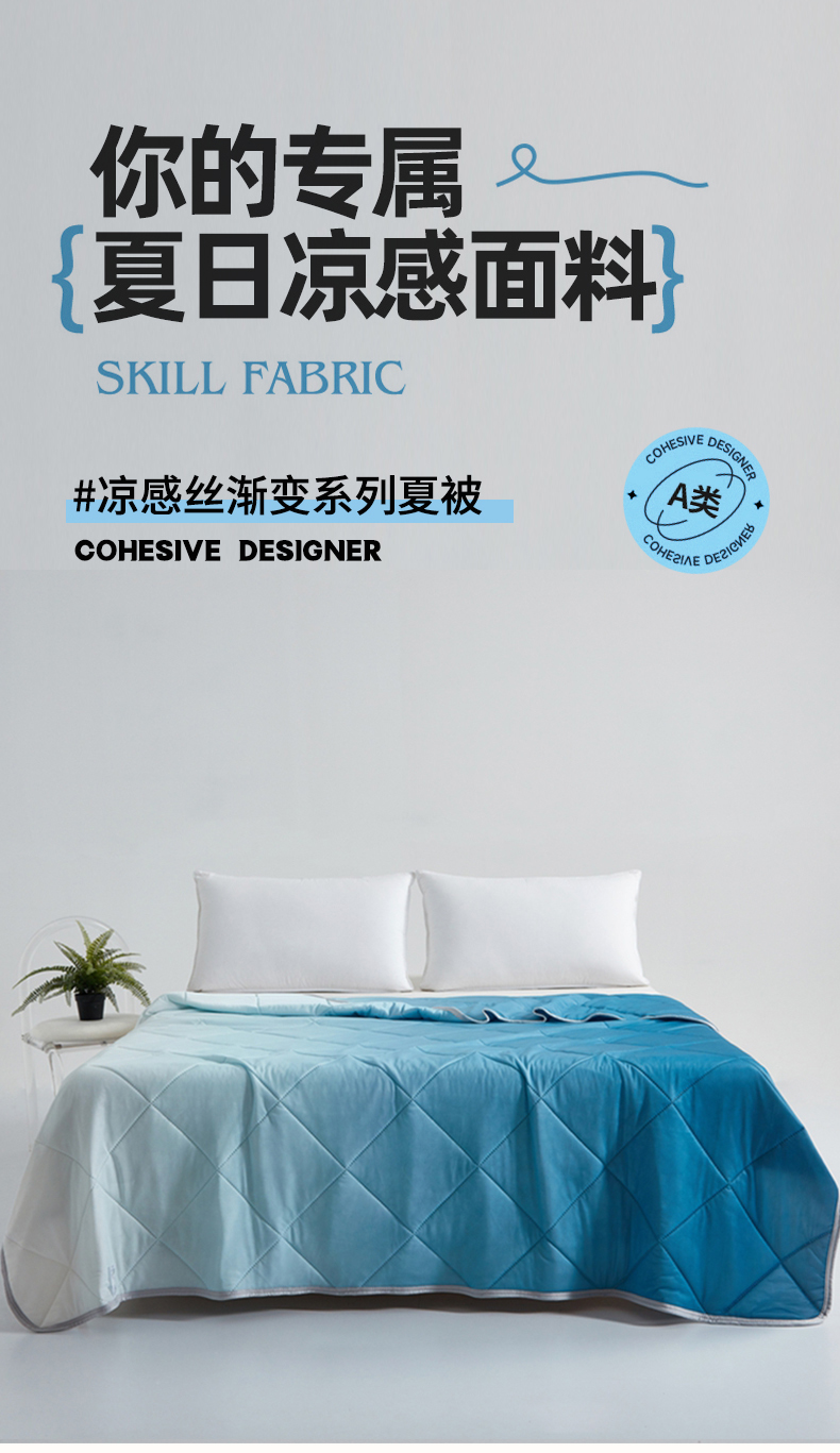 (总)安琪家纺 【跨境希音temu】2025新款凉感丝渐变系列夏凉被,宝石蓝,高级灰,焦糖色,孔雀蓝,米蓝色