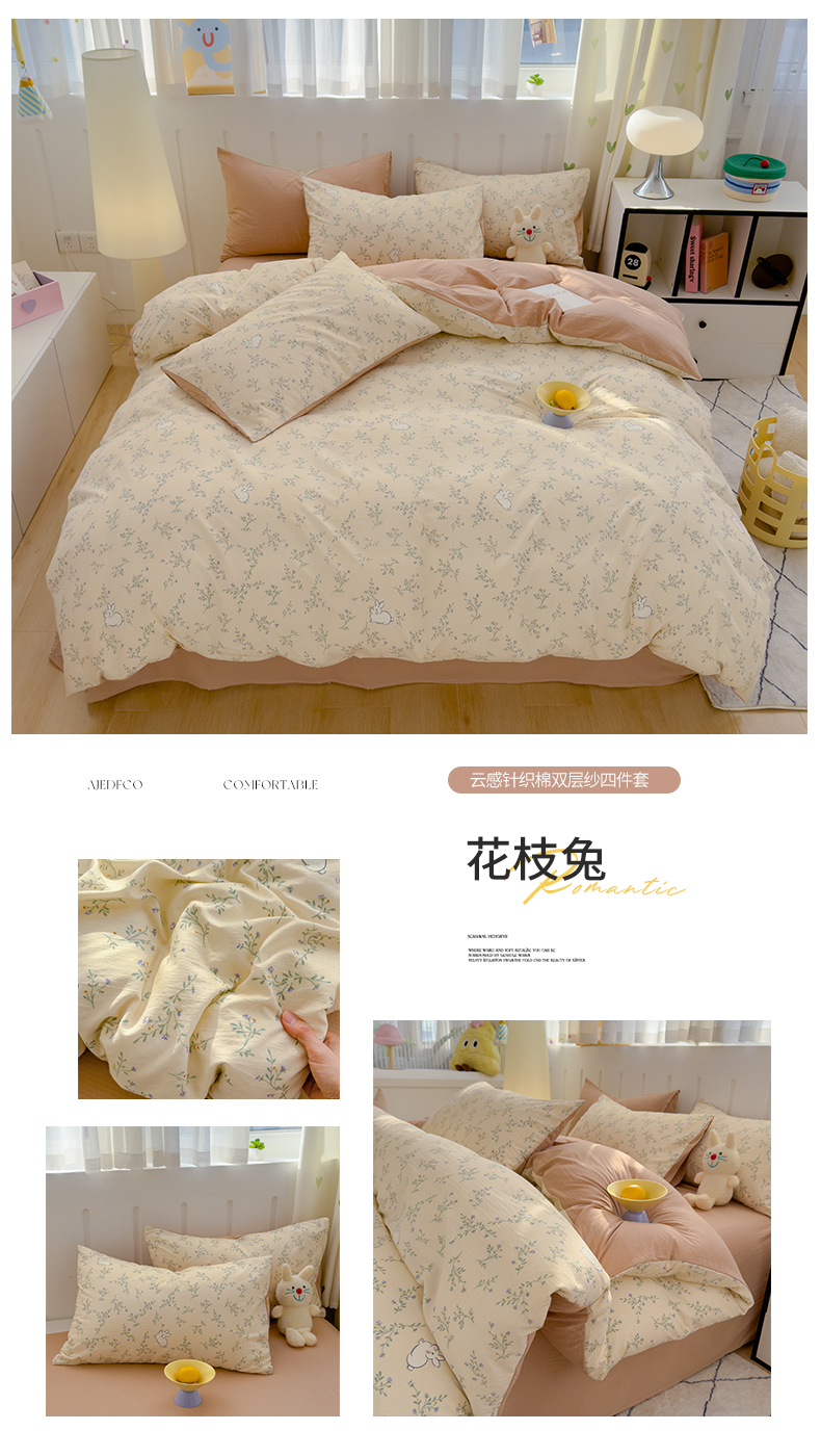 商品名称:宏源家纺 2025新款A类超柔有氧云感双层纱单被套 花枝兔
