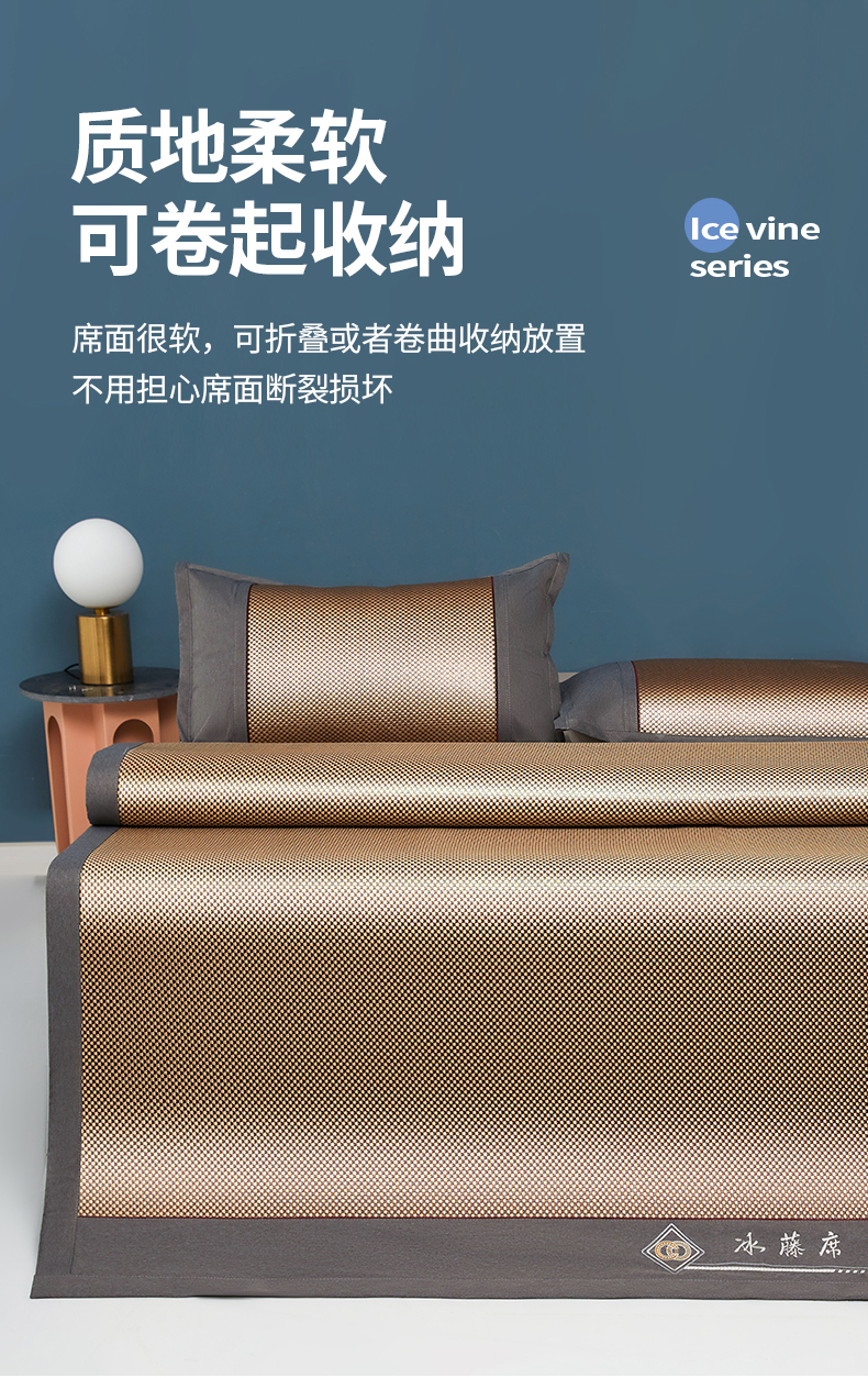 (总)琪琪阁 2026新款印尼藤双面凉席,古典棕,湖水蓝,清新粉,银河灰