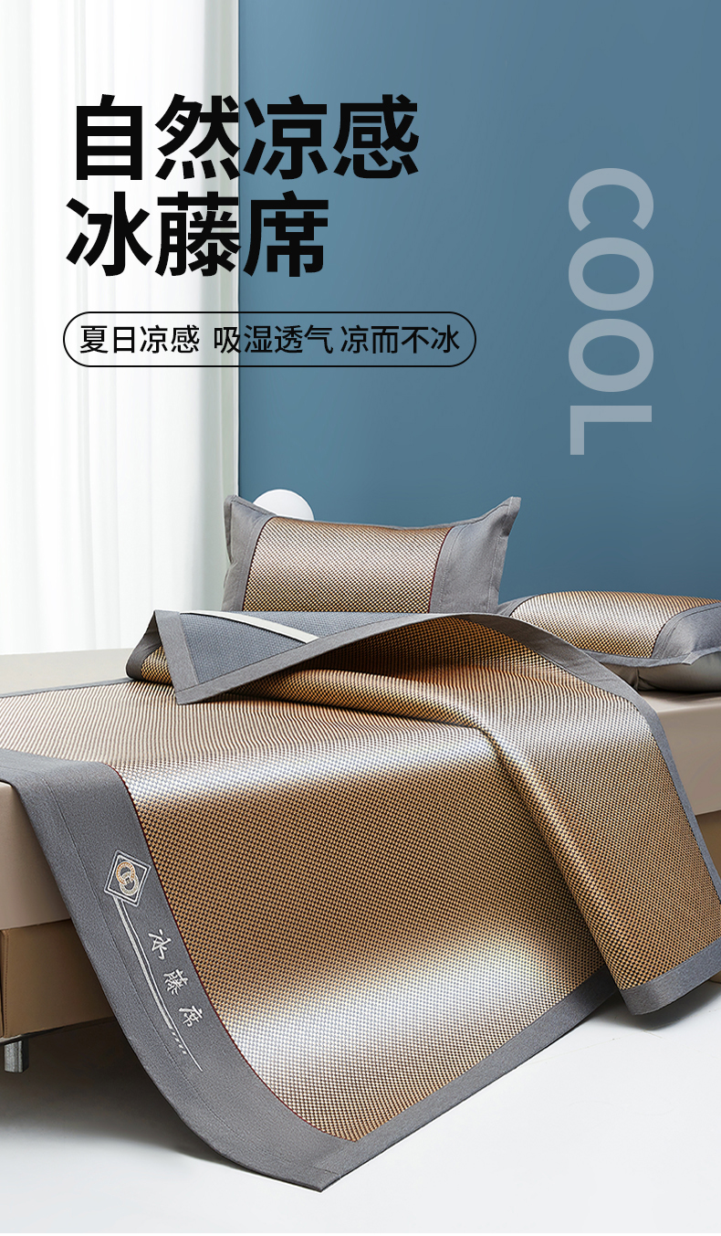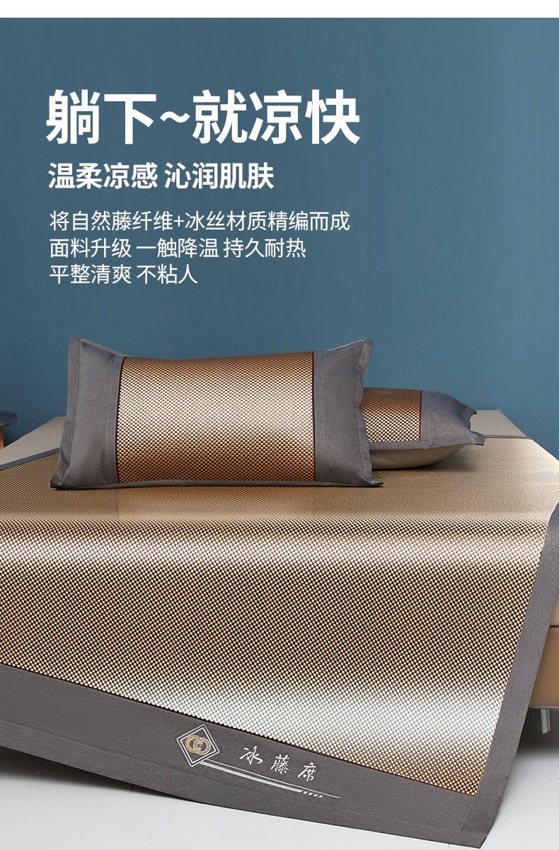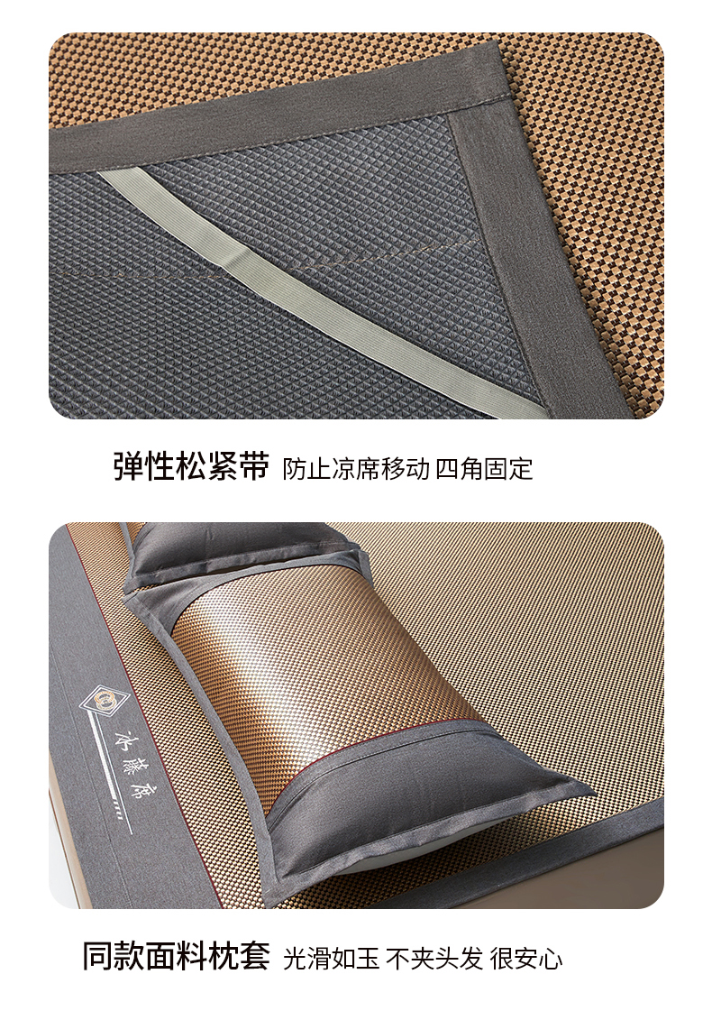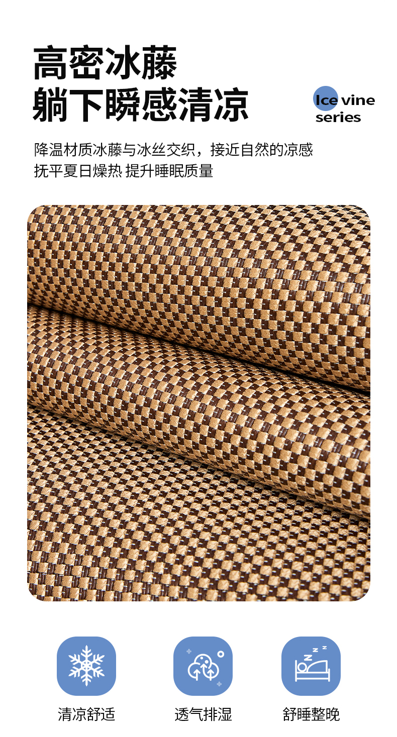 (总)琪琪阁 2026新款冰藤三明治凉席,小米花-灰色,小米花-金色,小米花-绿色,星星-浅灰,星星-深咖,星星-水绿,星星-雾蓝,星星-樱粉