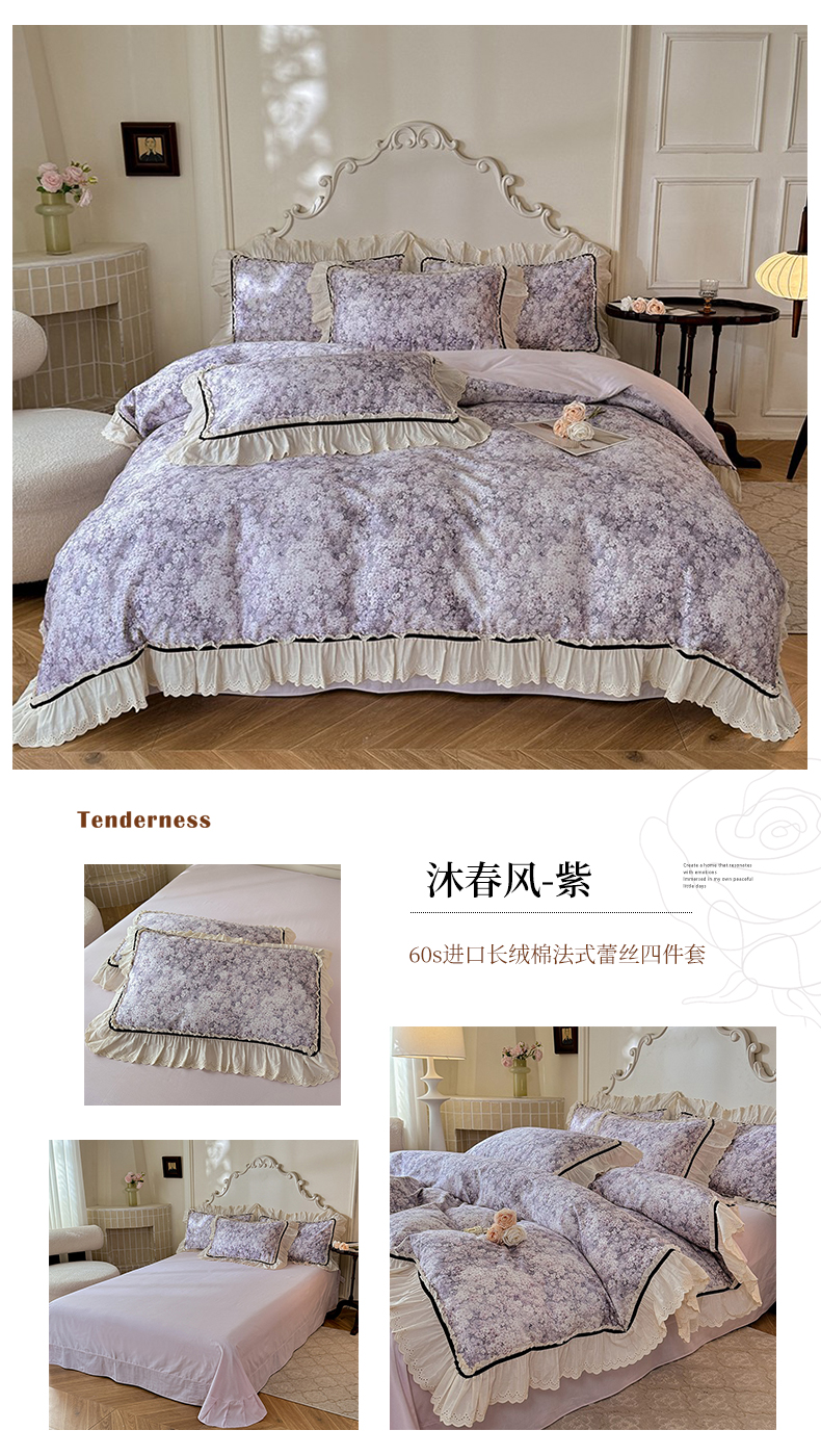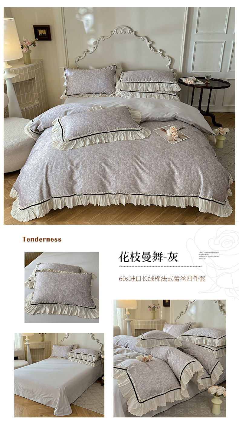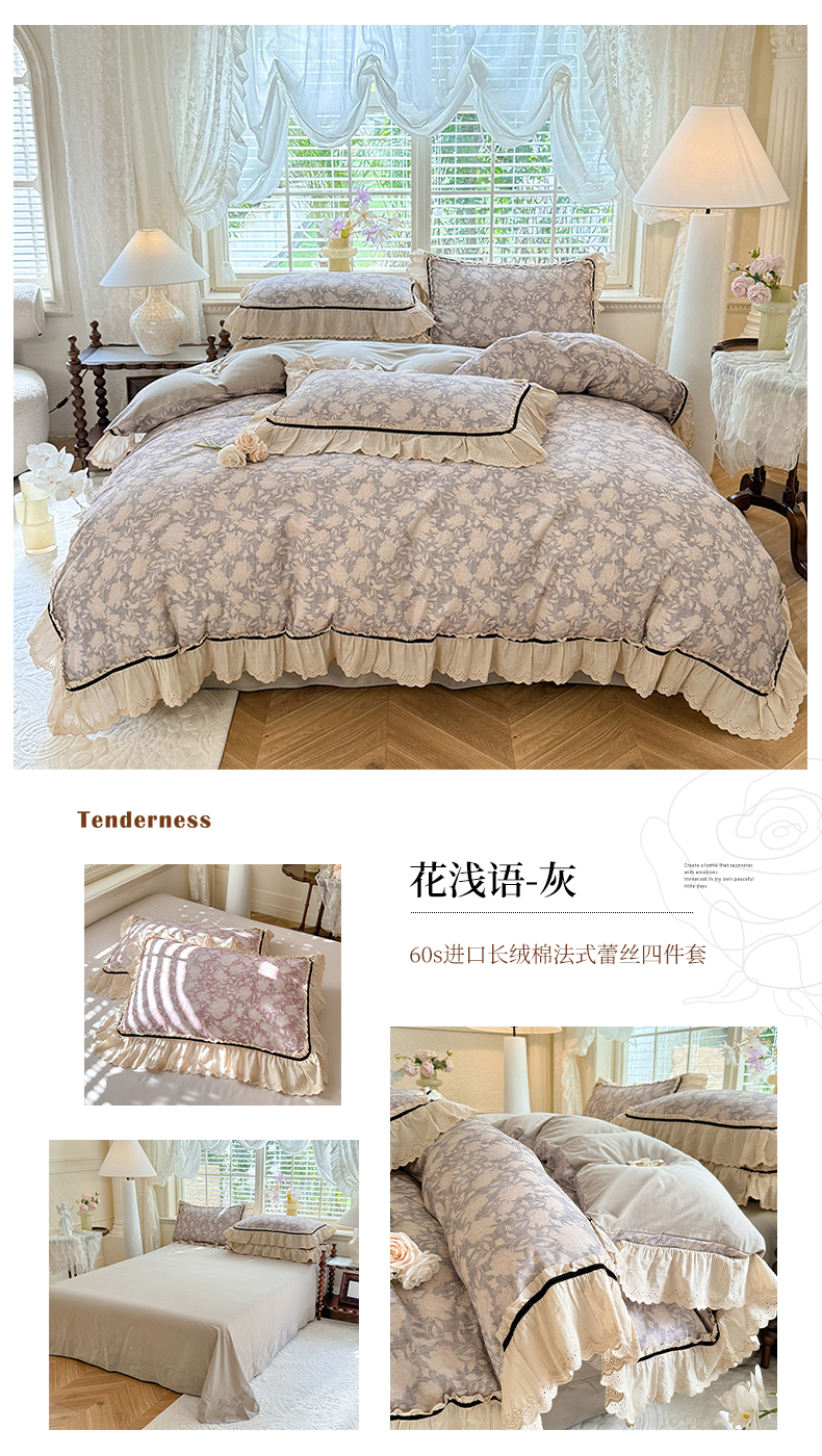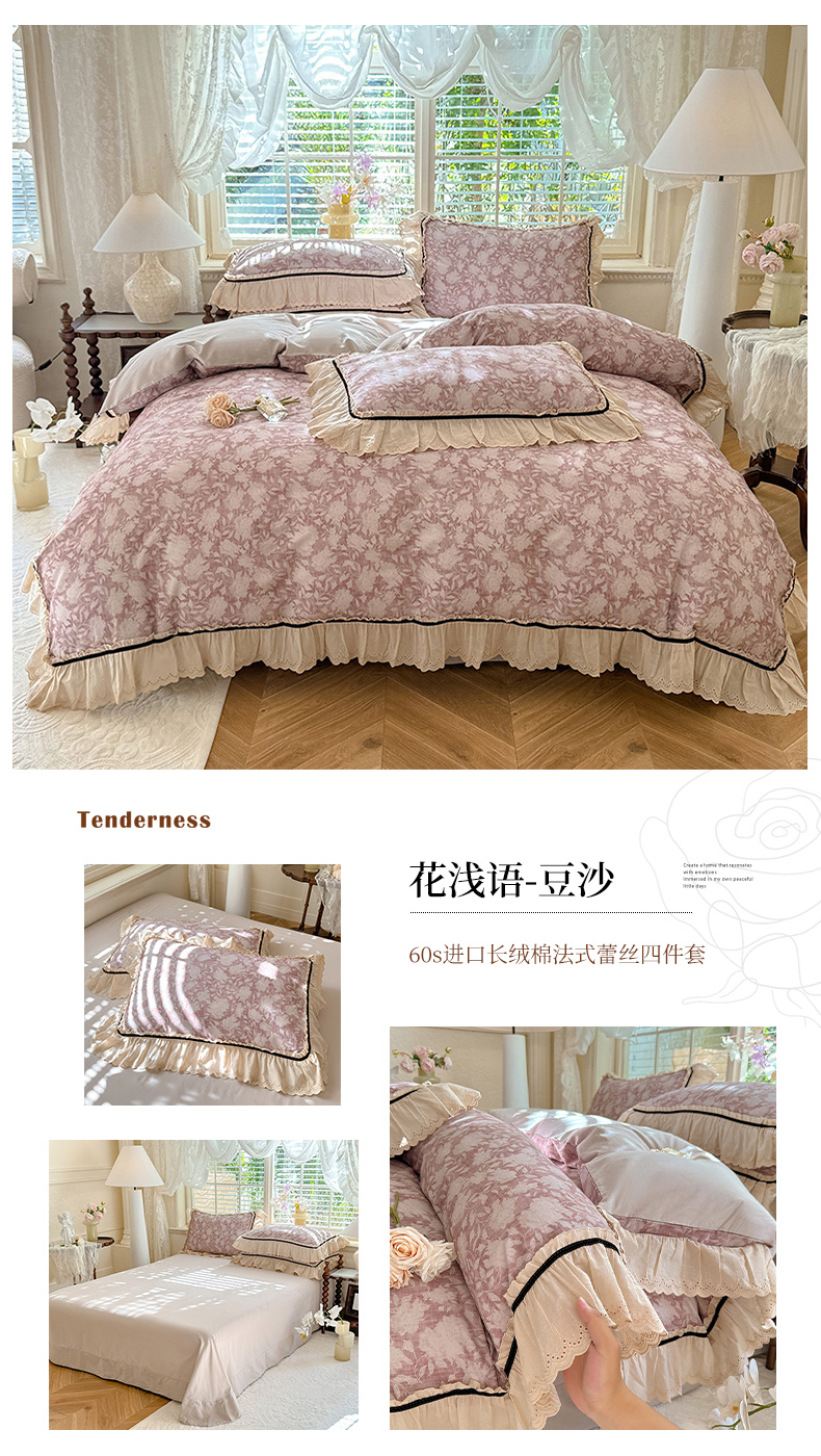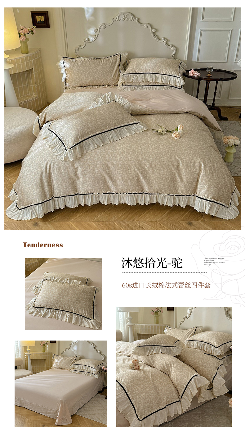 商品名称:(总)巧玲珑 2025新款法式蕾丝大花边印花60支进口长绒棉四件套