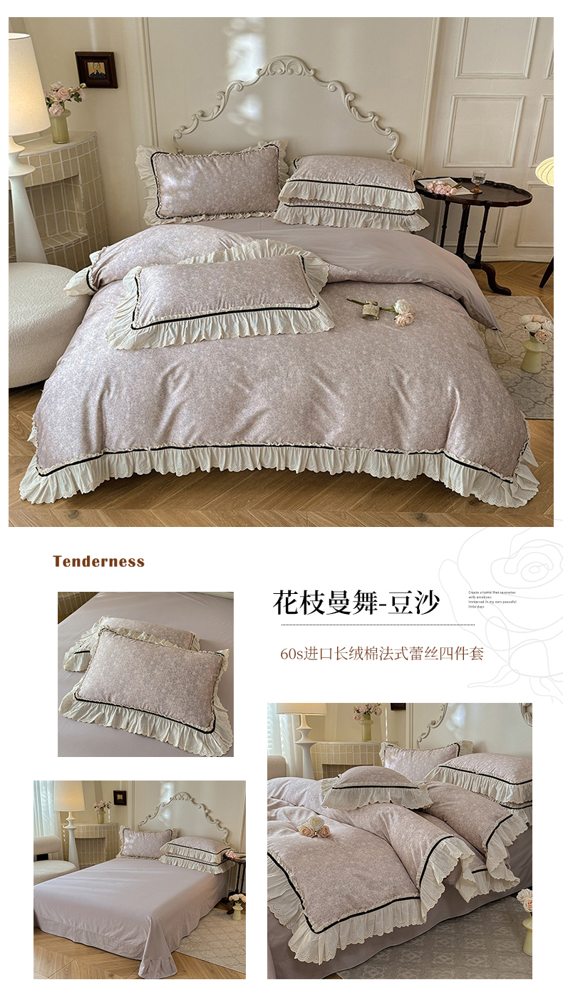 (总)巧玲珑 2025新款法式蕾丝大花边印花60支进口长绒棉四件套,繁花似锦-粉,繁花似锦-咖,繁花似锦-绿,花枝曼舞-豆沙,花枝曼舞-灰,花枝曼舞-兰,沐春风-绿,沐春风-紫,沐悠拾光-绿,沐悠拾光-驼,阳光花房,月松影,花浅语-豆沙,花浅语-灰,花溪-豆沙,花溪-灰