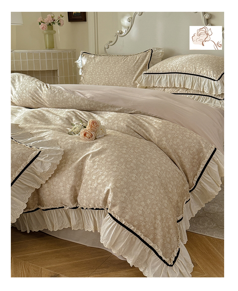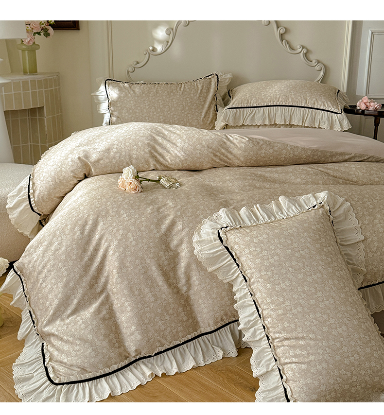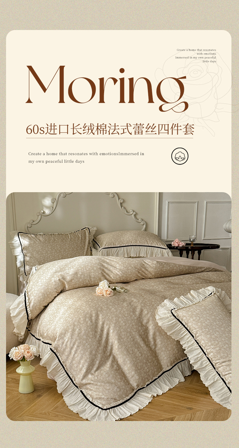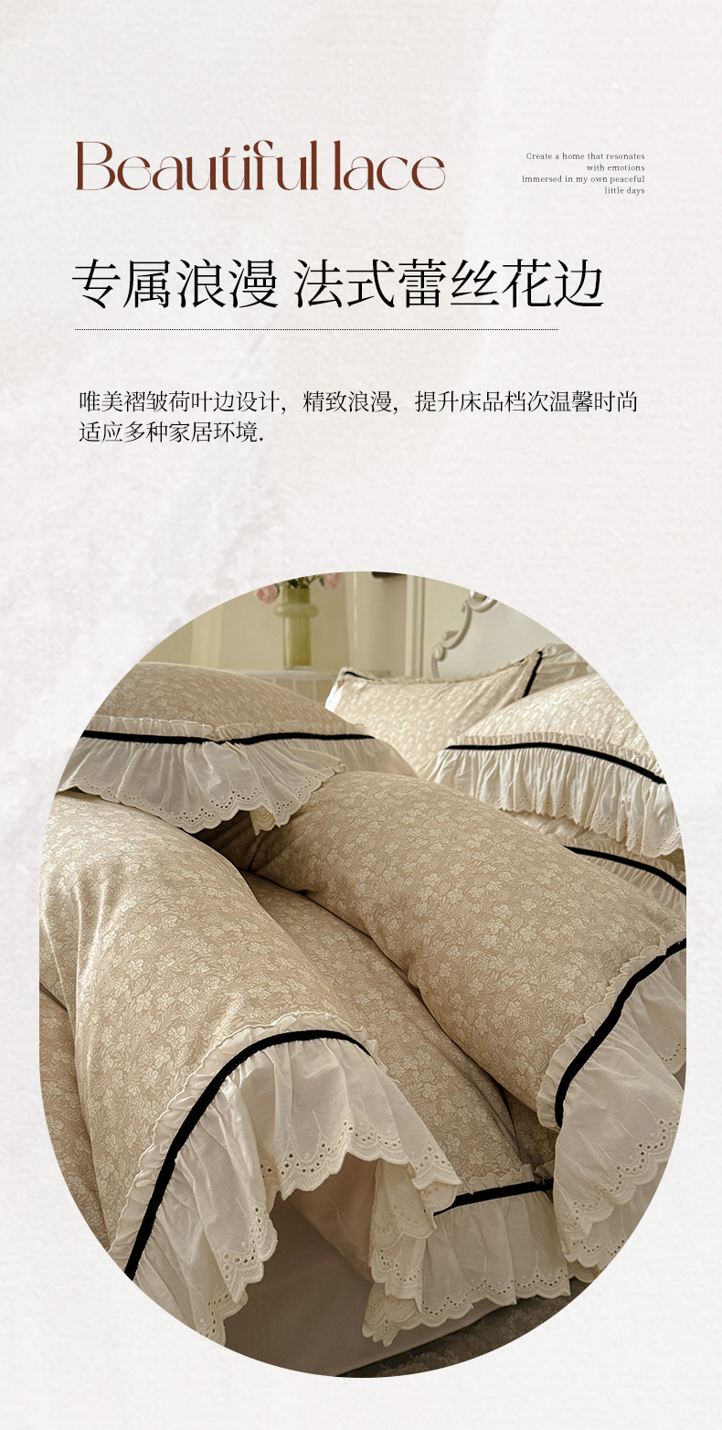 巧玲珑 2025新款法式蕾丝印花60支进口长绒棉四件套 沐悠拾光-驼