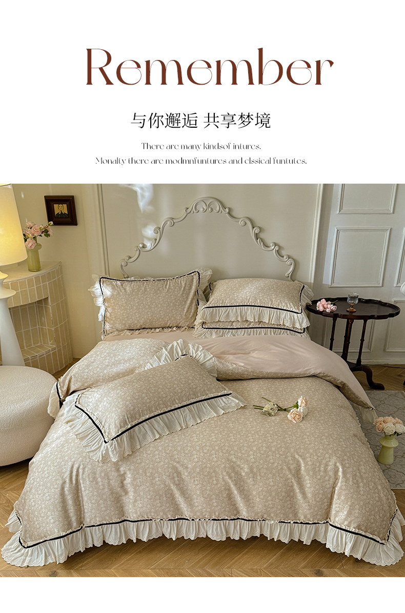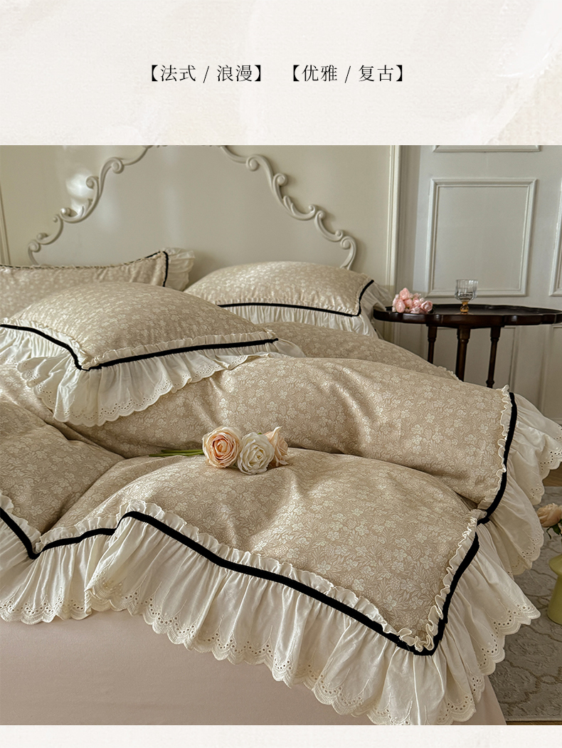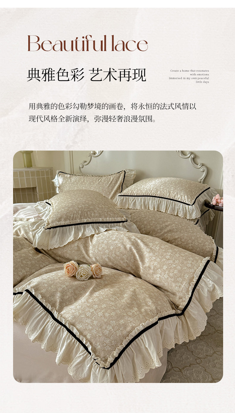 商品名称:巧玲珑 2025新款法式蕾丝印花60支进口长绒棉四件套 沐悠拾光-驼