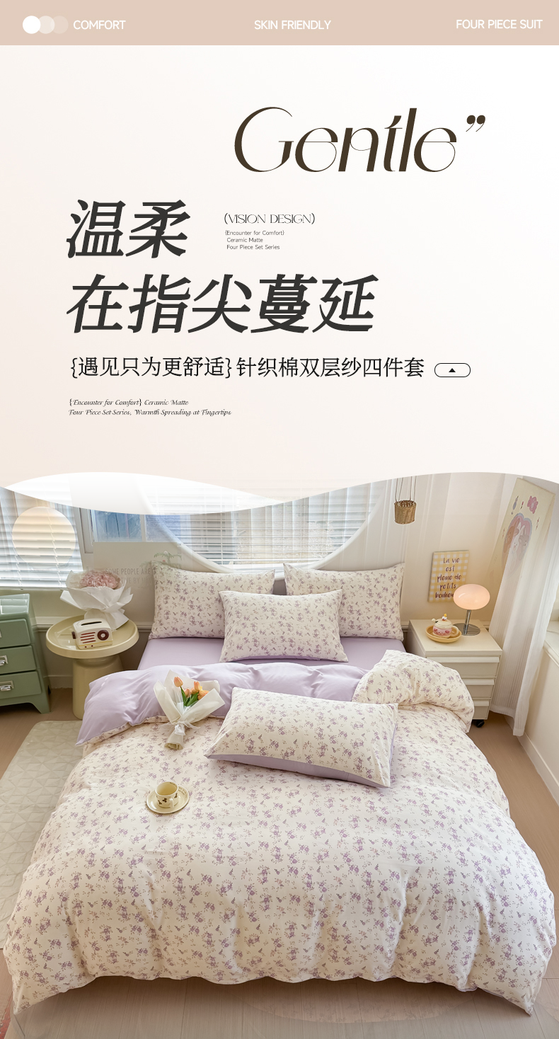 商品名称:(总)2025新款针织棉双层纱印花四件套 单被套