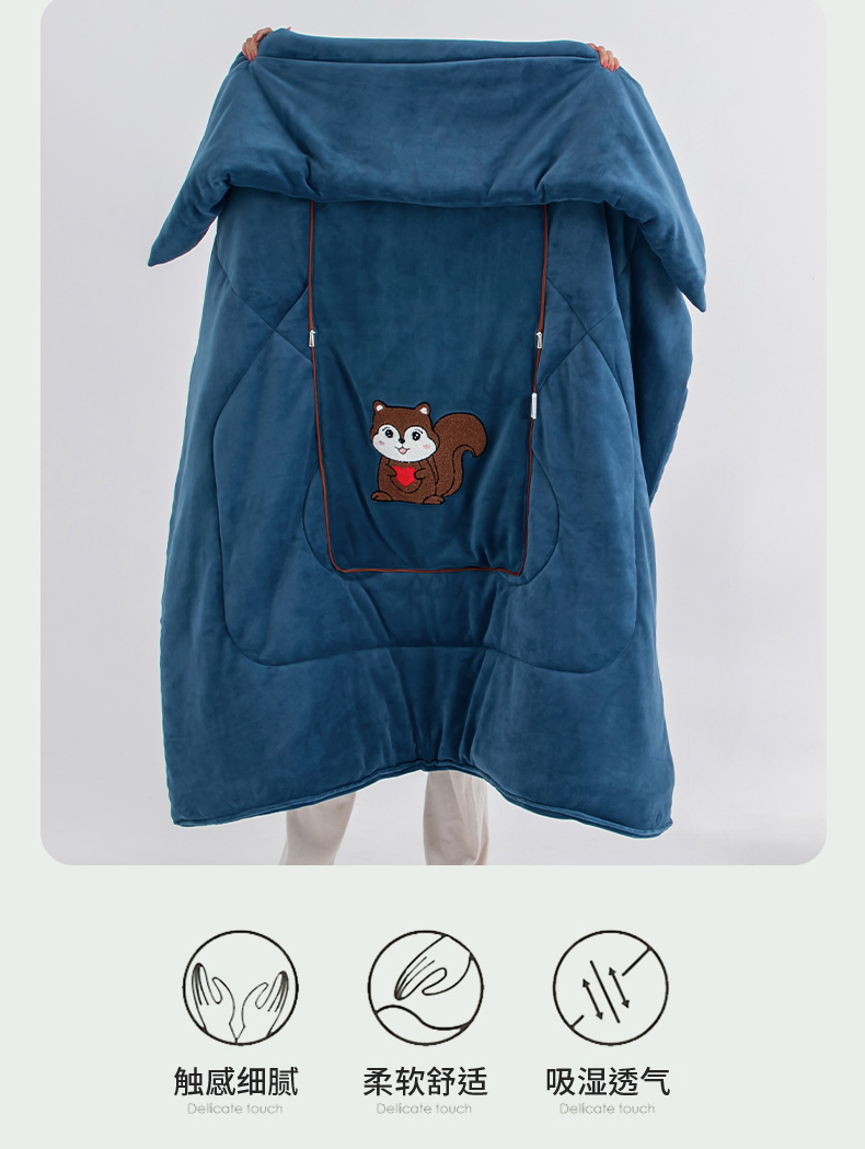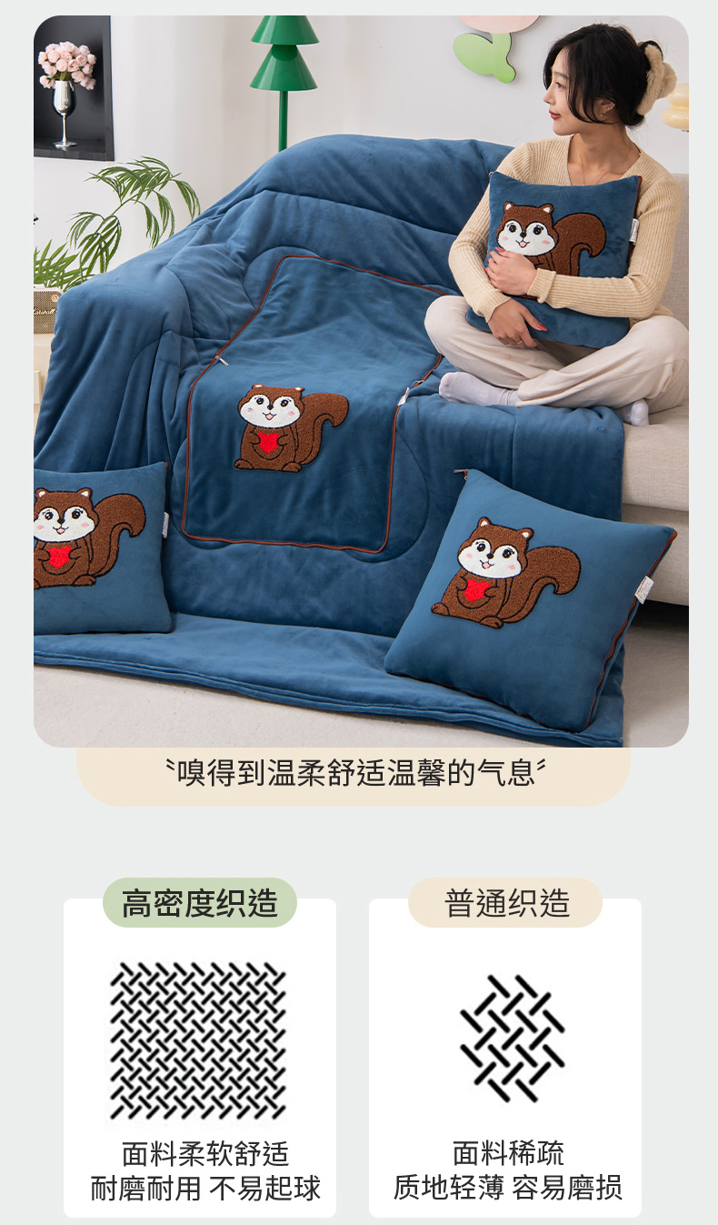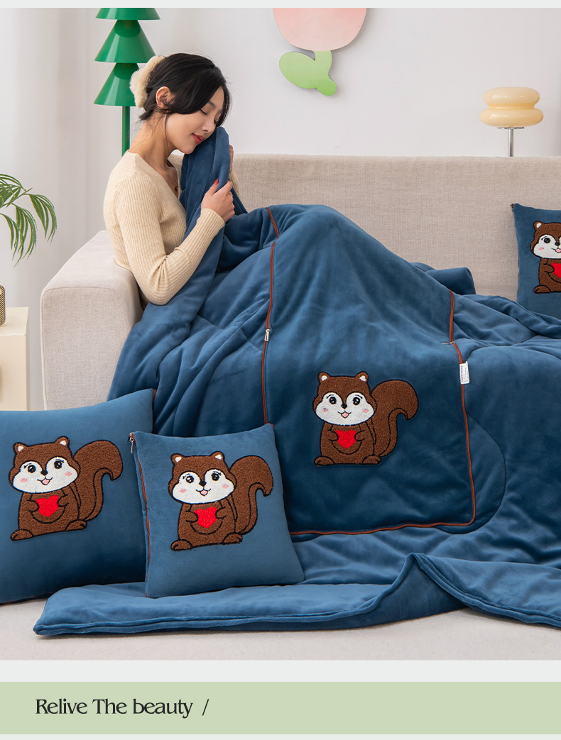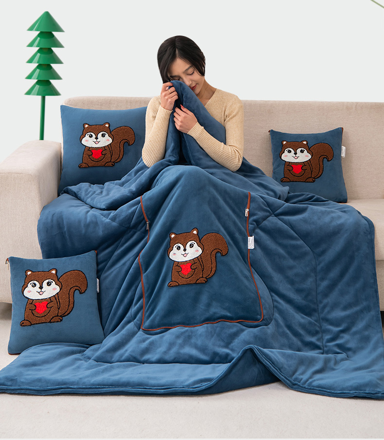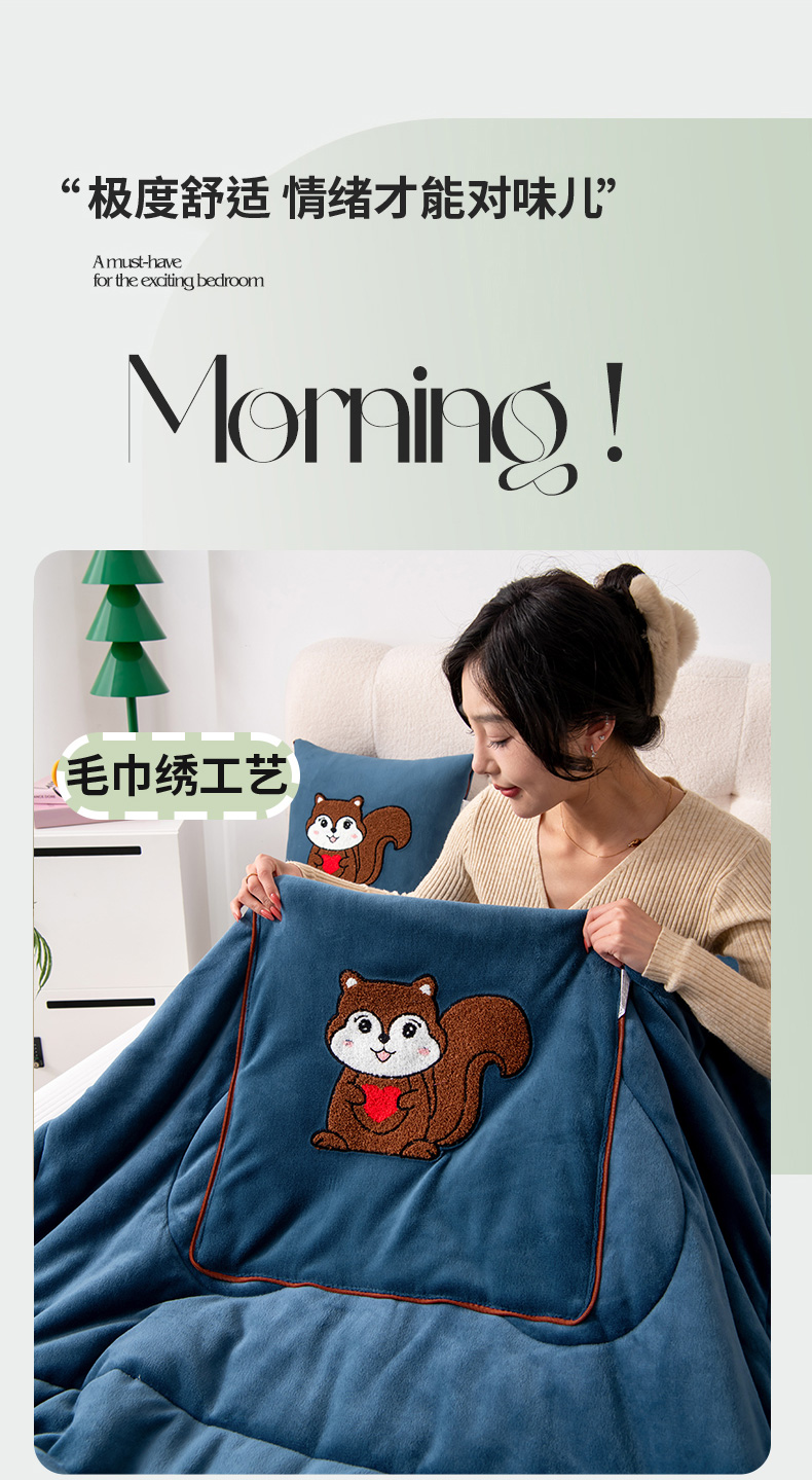 商品名称:宝马家纺(原梦童画) 2025新款牛奶绒小松鼠抱枕被 宾利蓝