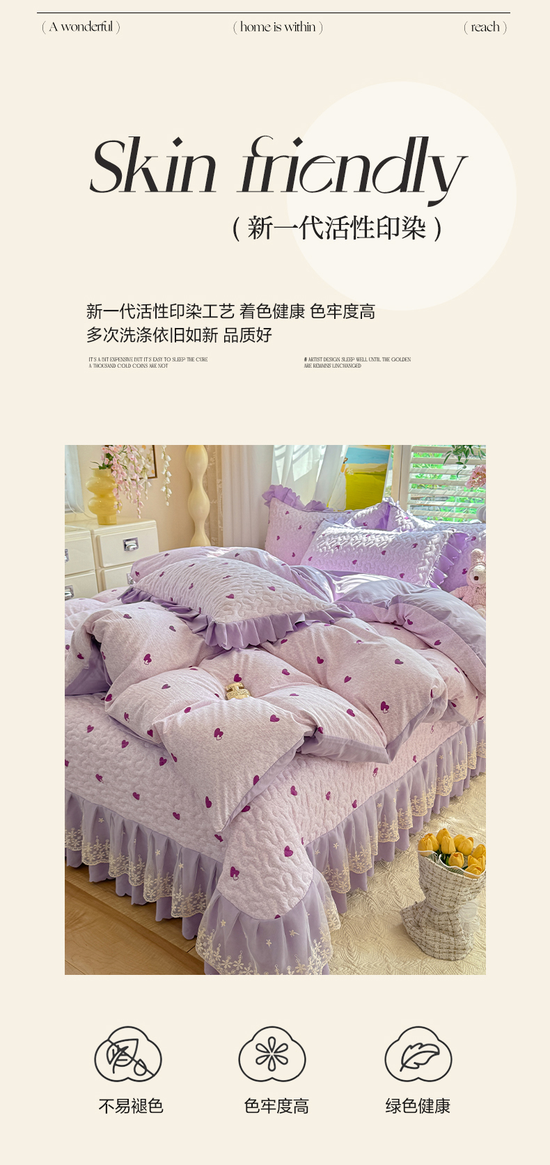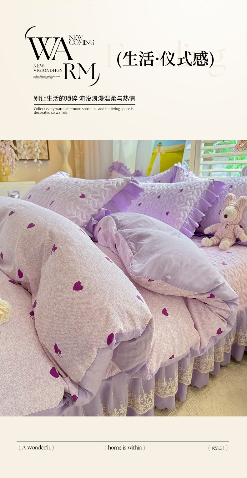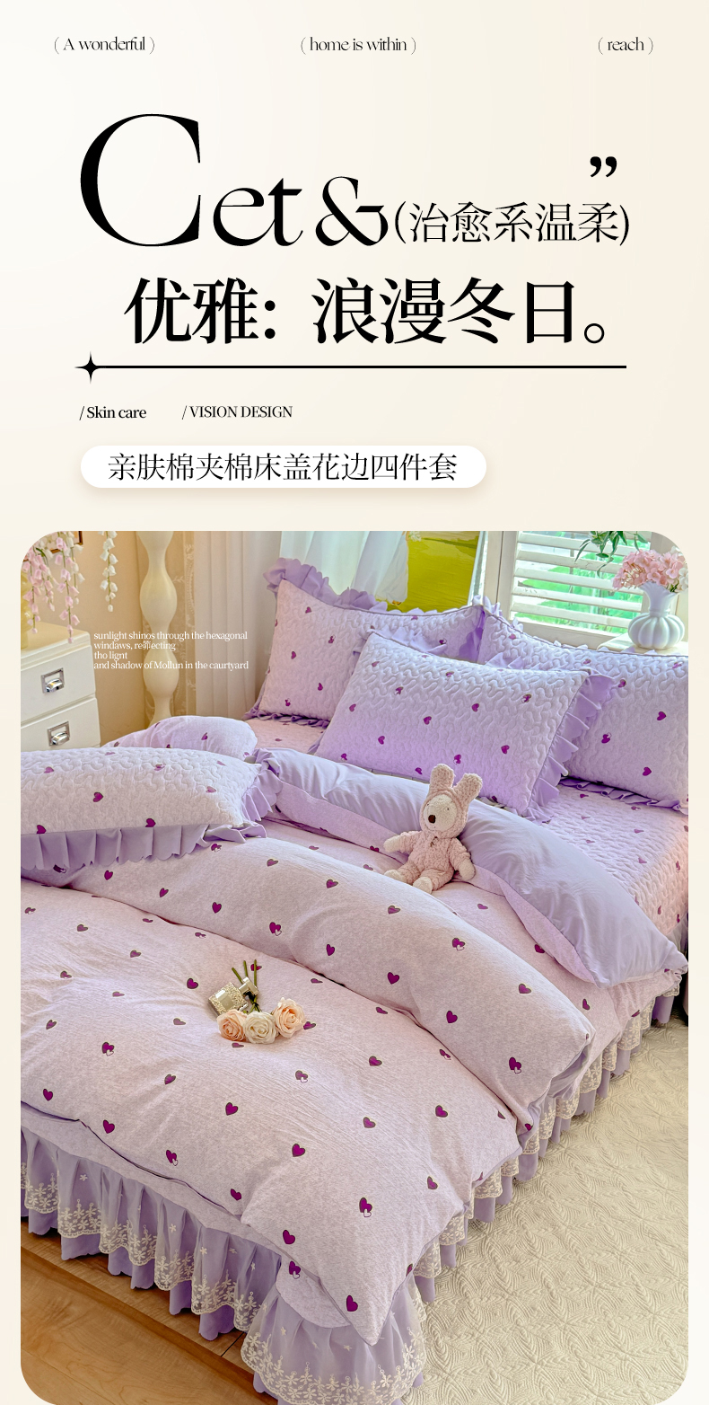 (总)九诺家纺 2025新款花夕云朵棉蕾丝花边床盖四件套,花夕- 薄荷绿,花夕-豆沙,花夕-高级灰,花夕-浪漫紫,花夕-奶黄,花夕-浅紫,花夕-碎冰兰,花夕-天空蓝,花夕-香妃橙,花夕-樱花粉,花夕-玉色