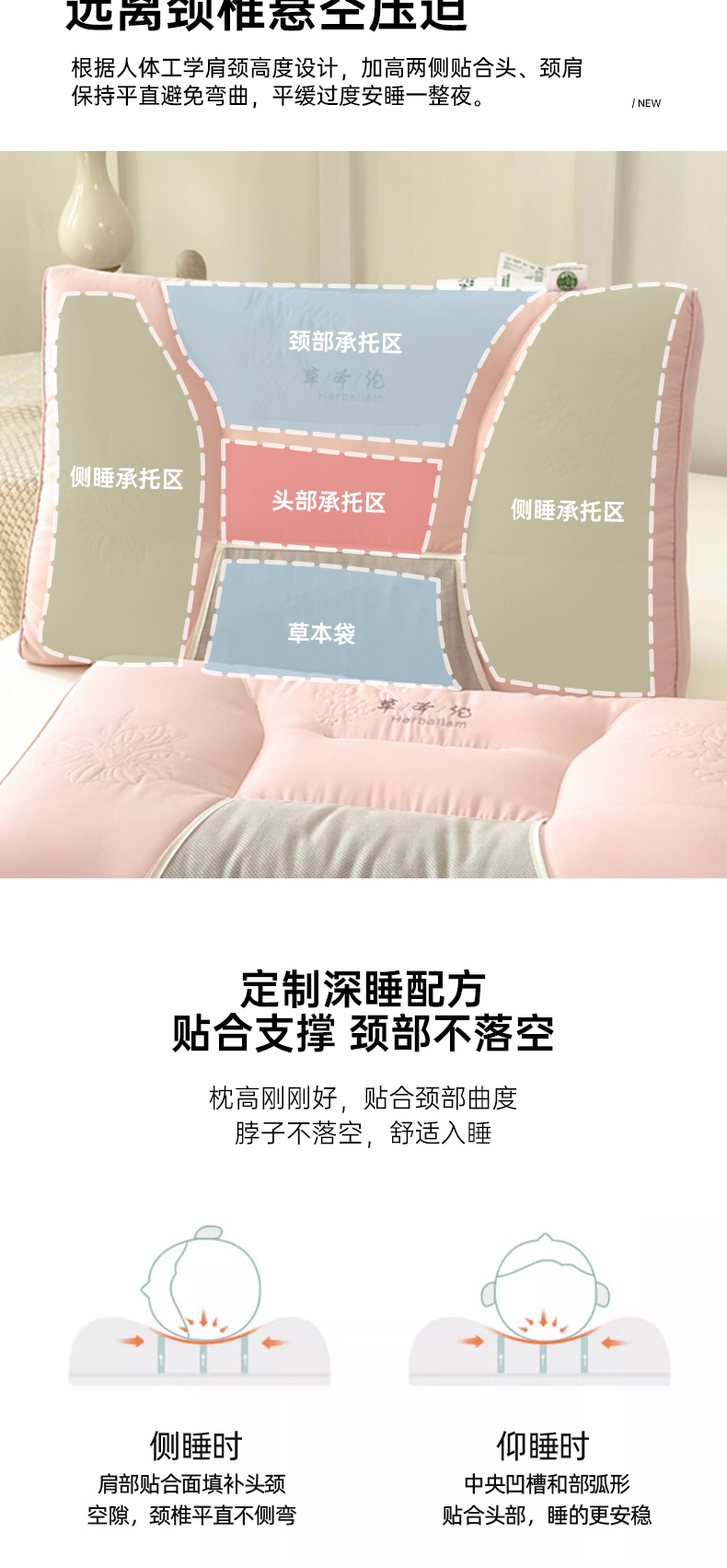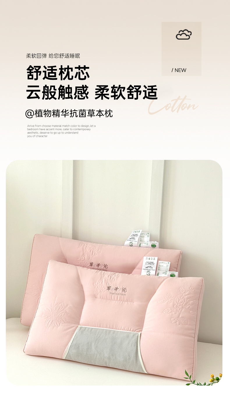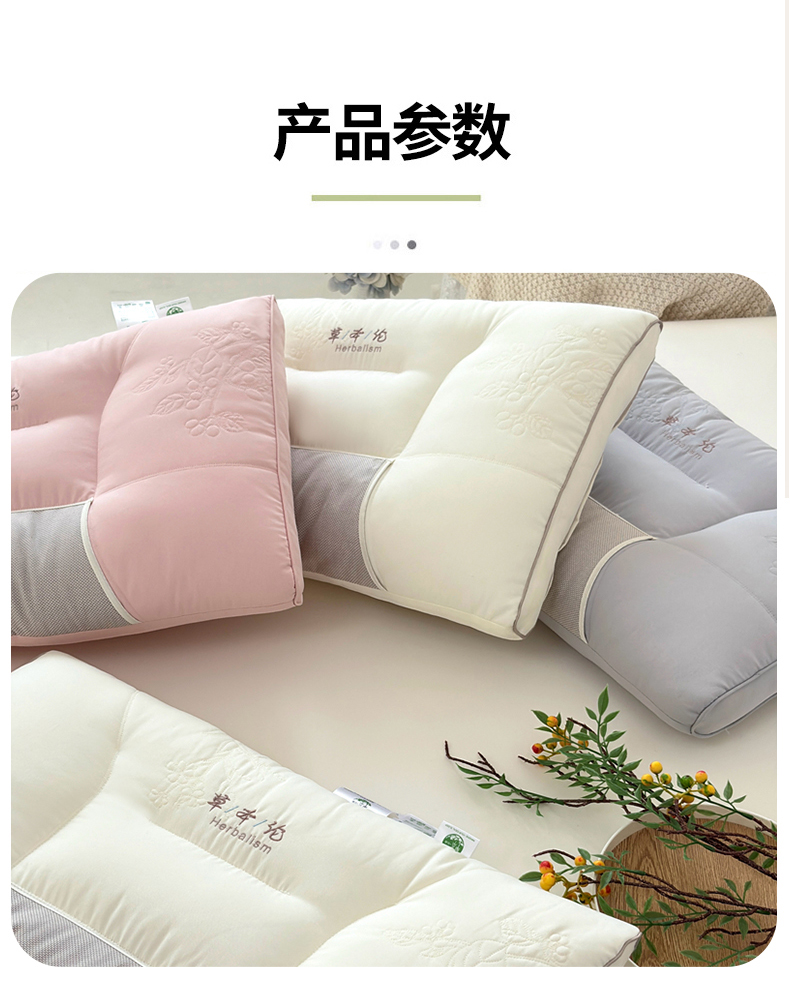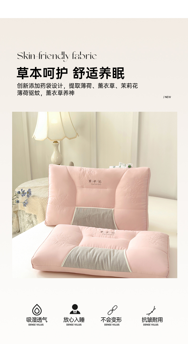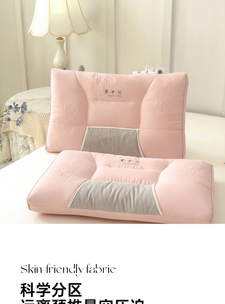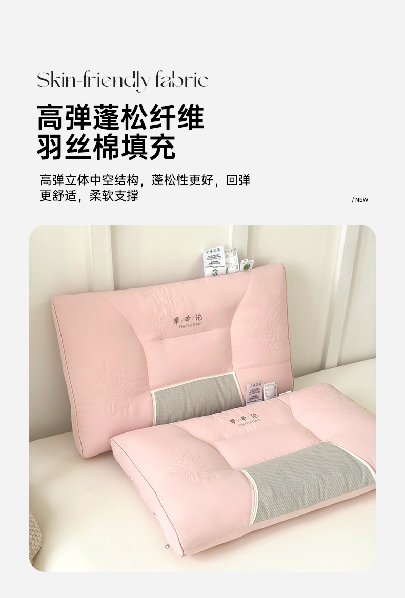 商品名称:爱尚家枕芯 2025新款植物精华抗菌草本枕枕头枕芯 粉色(48*74cm/只)
