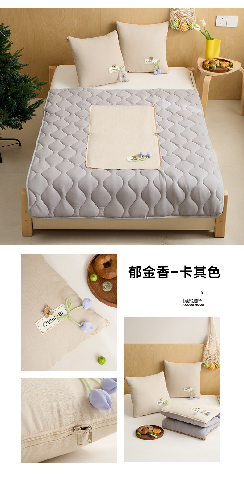 商品名称:枕芯真意 2025新款小清新全棉多功能郁金香抱枕被 郁金香-卡其色
