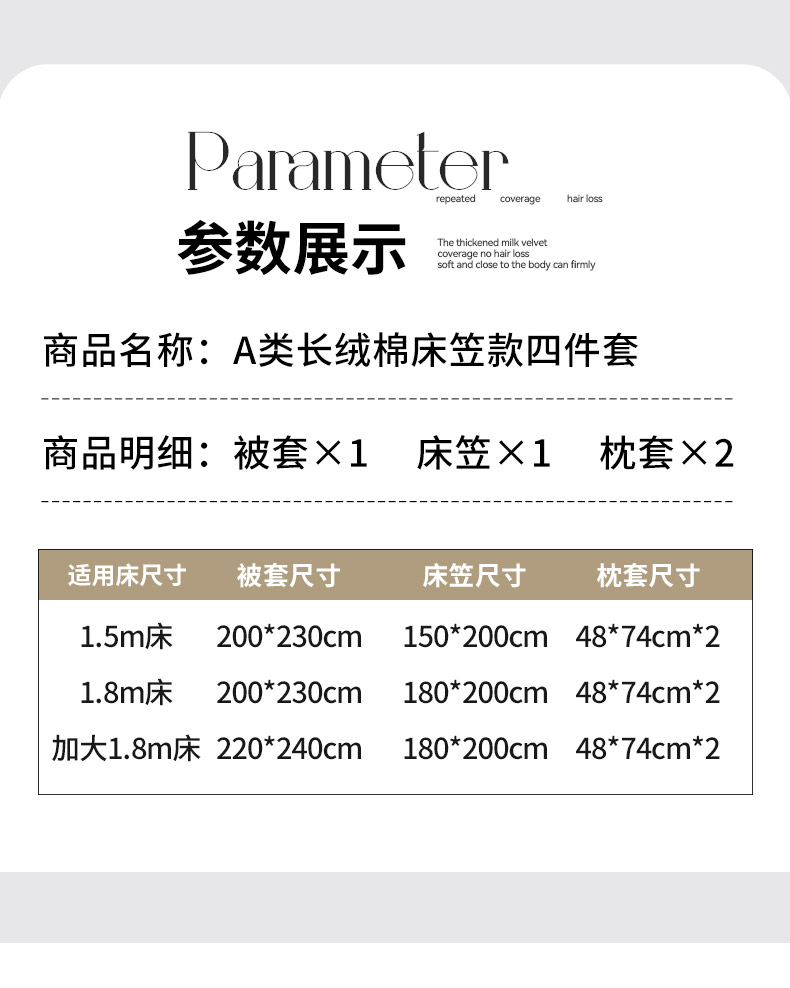 1.8m夹棉床笠款四件套 | ¥260.00 |