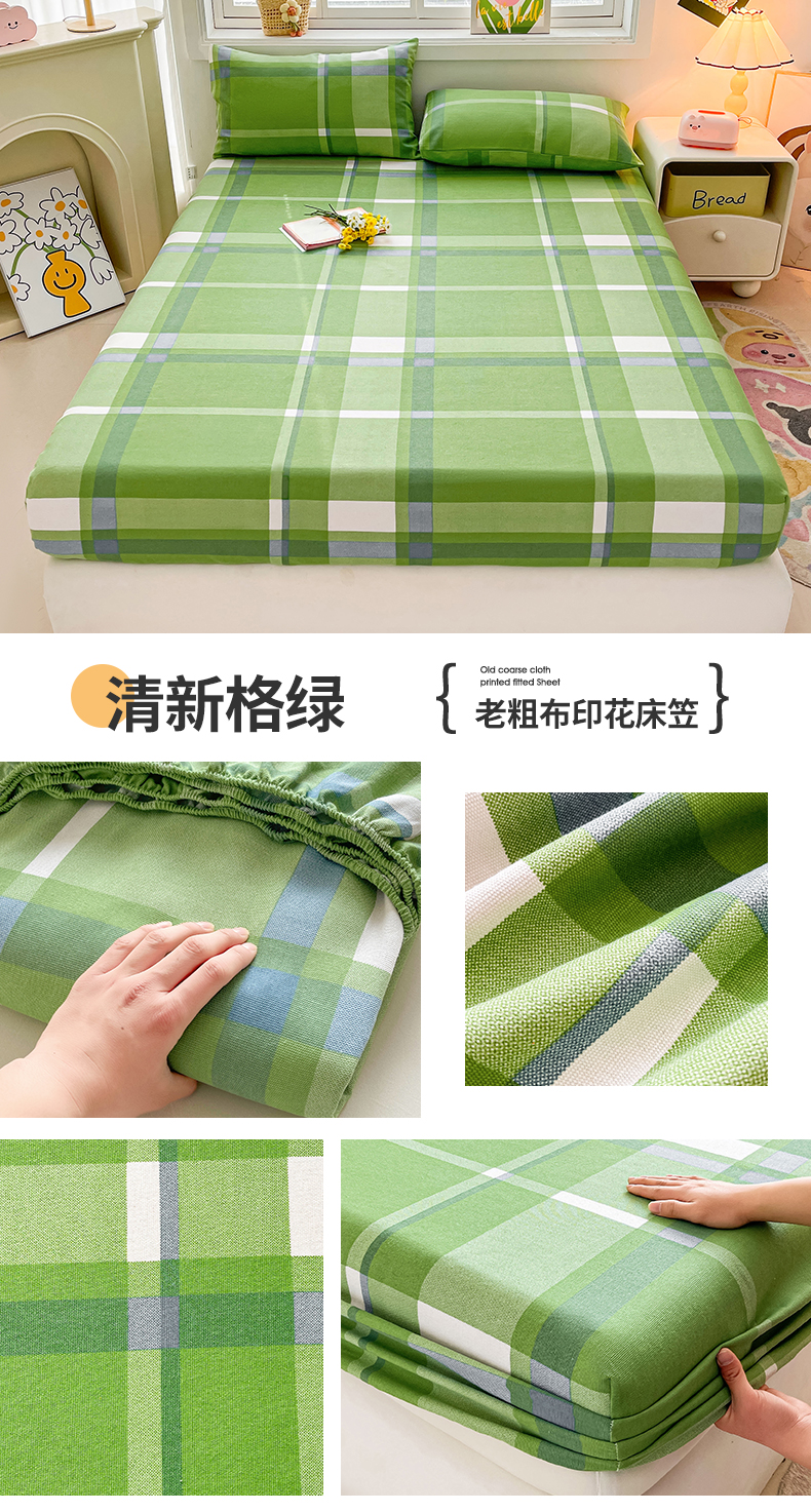 晓时候2025新款老粗布床笠凉席 清新格绿