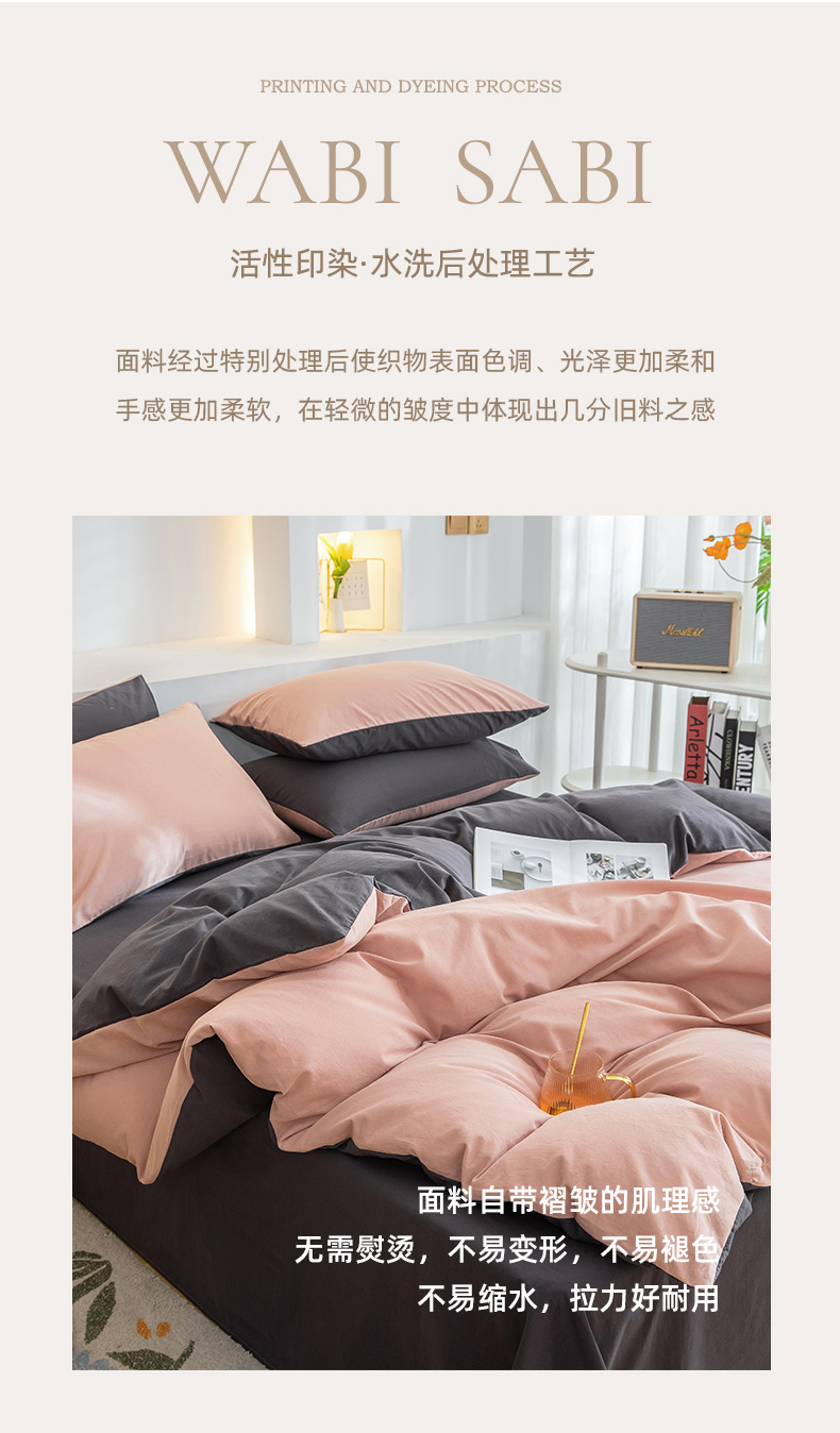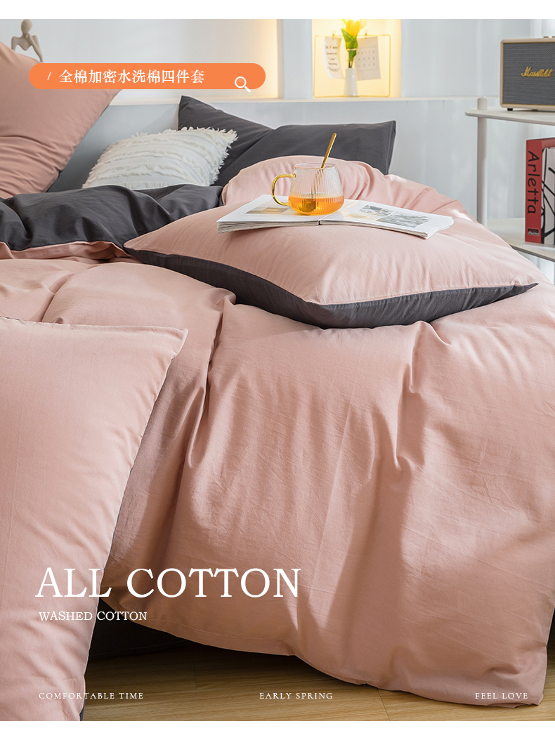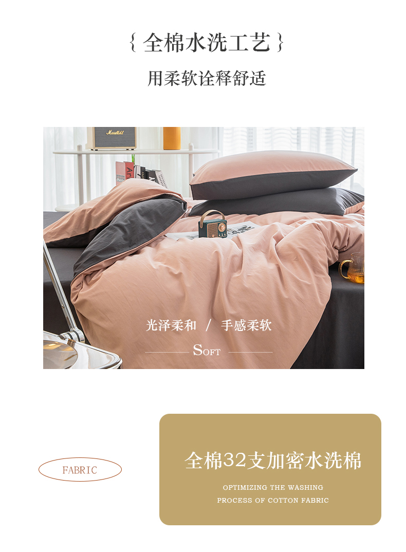 当前位置: 91家纺网 > 商品网购 > 床品套件 > 四件套 > 全棉普通四件套 > 2025新款全棉双拼水洗棉四件套 双拼-豆沙深灰