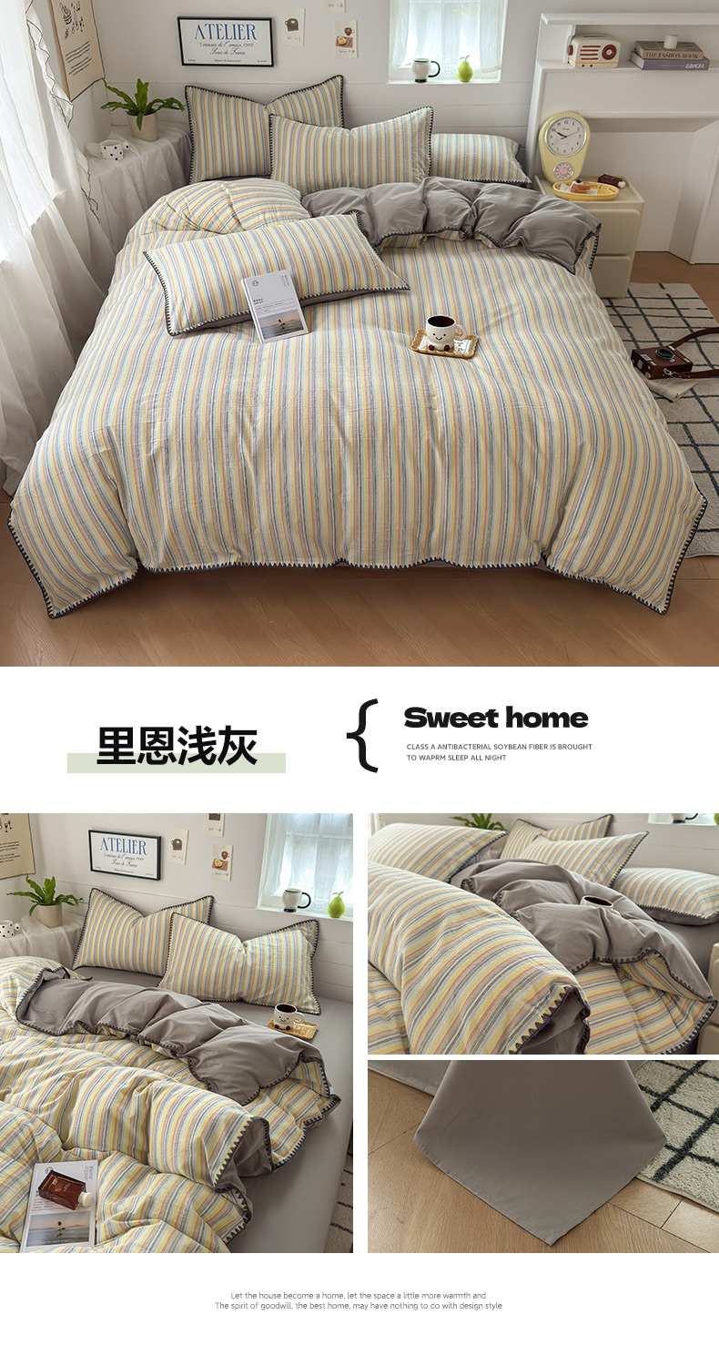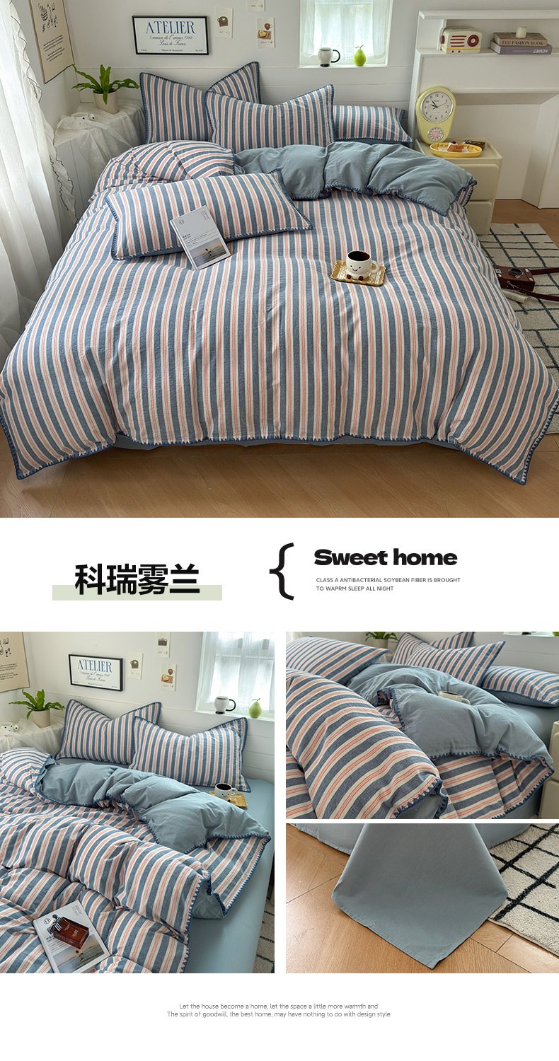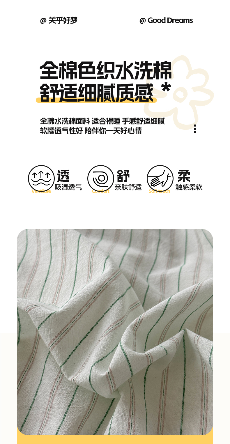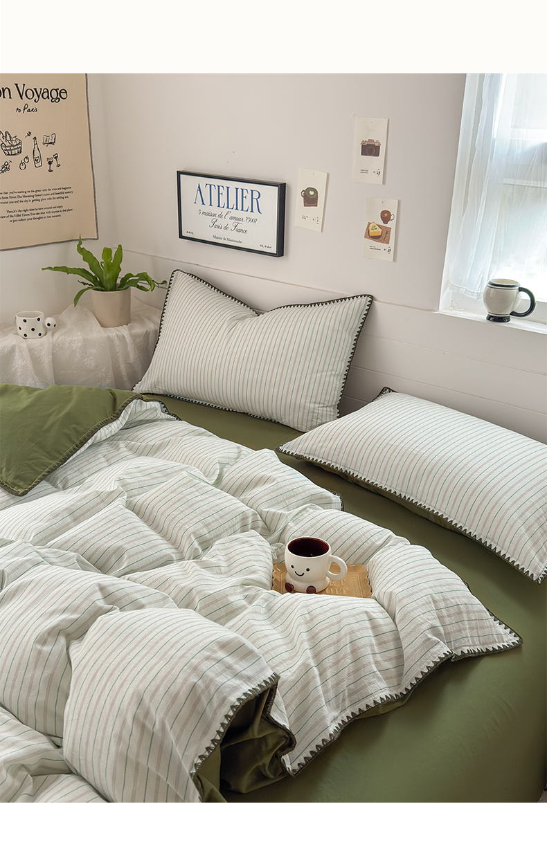 当前位置: 91家纺网 > 商品网购 > 床品套件 > 四件套 > 水洗棉四件套 > 2025新款A类全棉色织水洗棉贝壳绣条纹系列四件套 柒夏绿