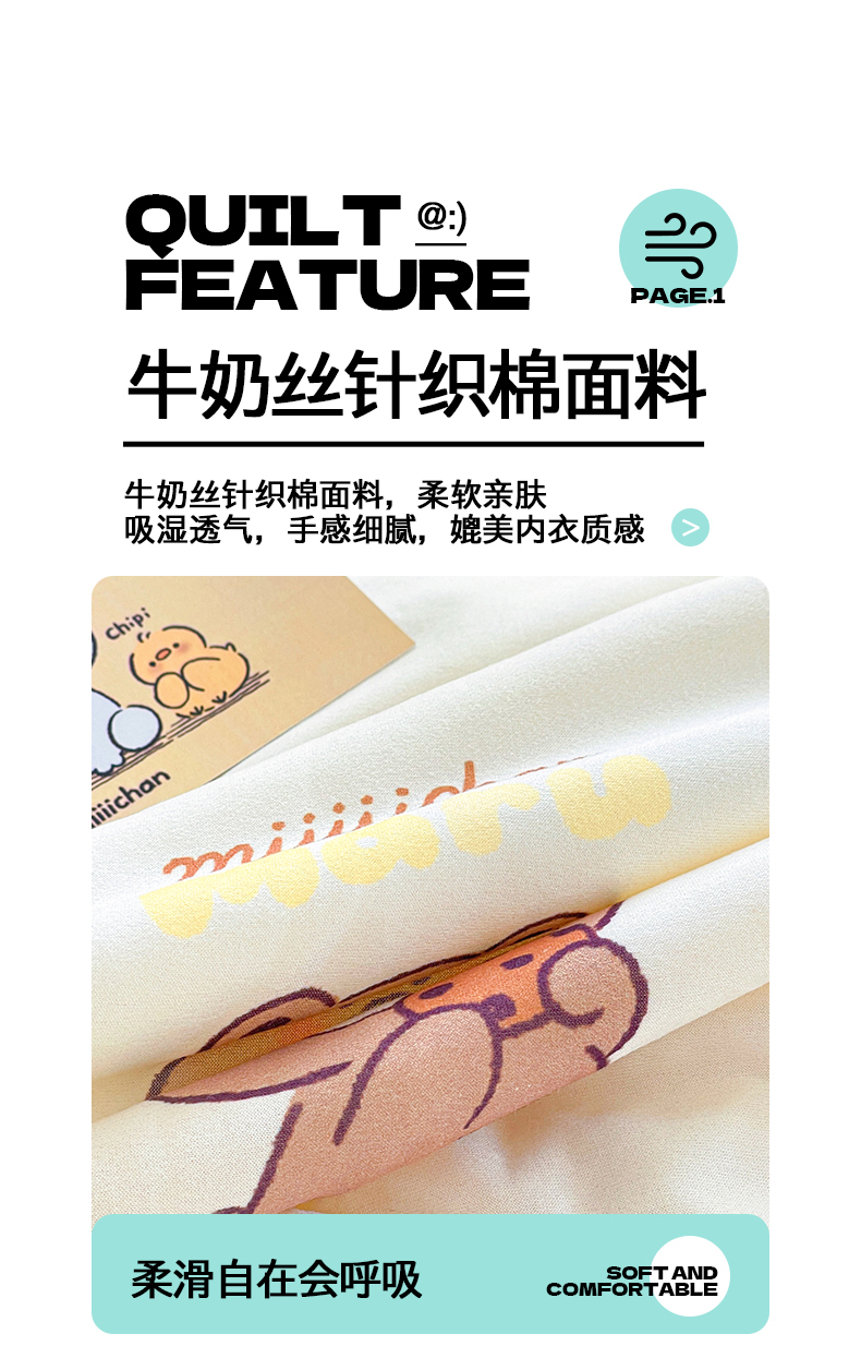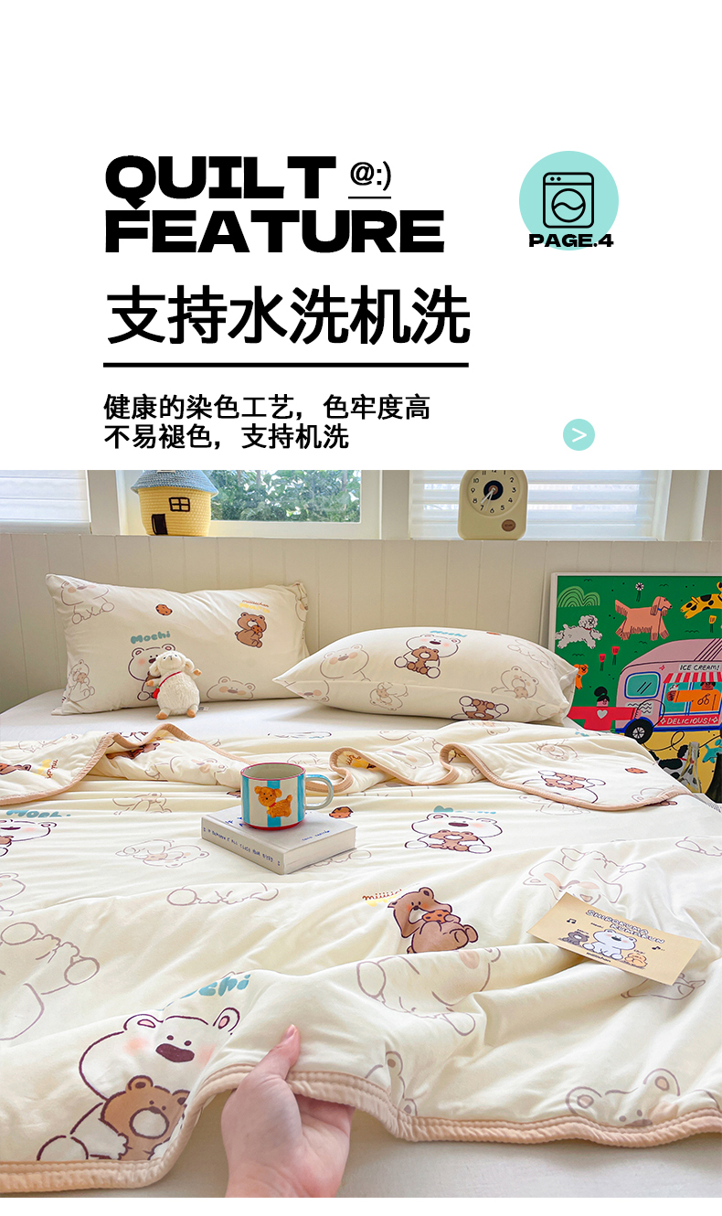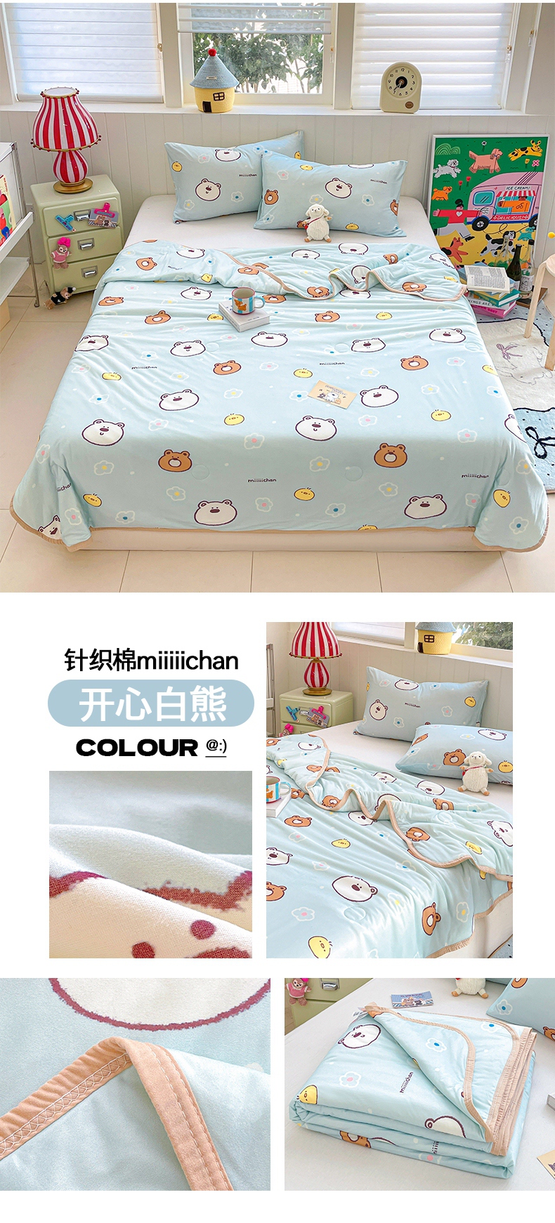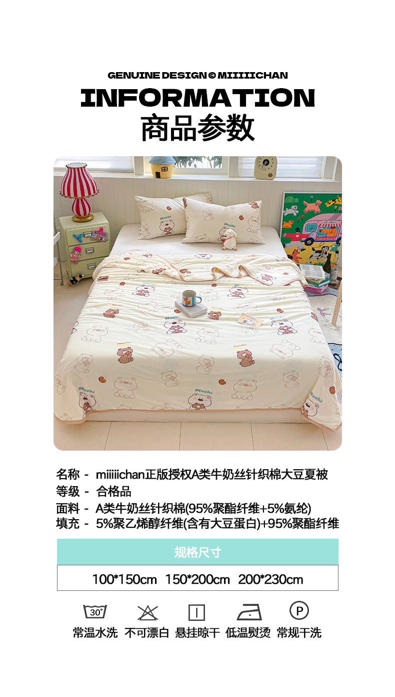 商品名称:桃子家居 2025新款A类高品质正版授权miiiiichan可爱卡通狗狗白熊女孩牛奶丝针织棉夏被夏凉被空调被 针织棉miiiiichan-奶咖棕熊