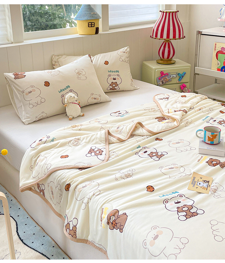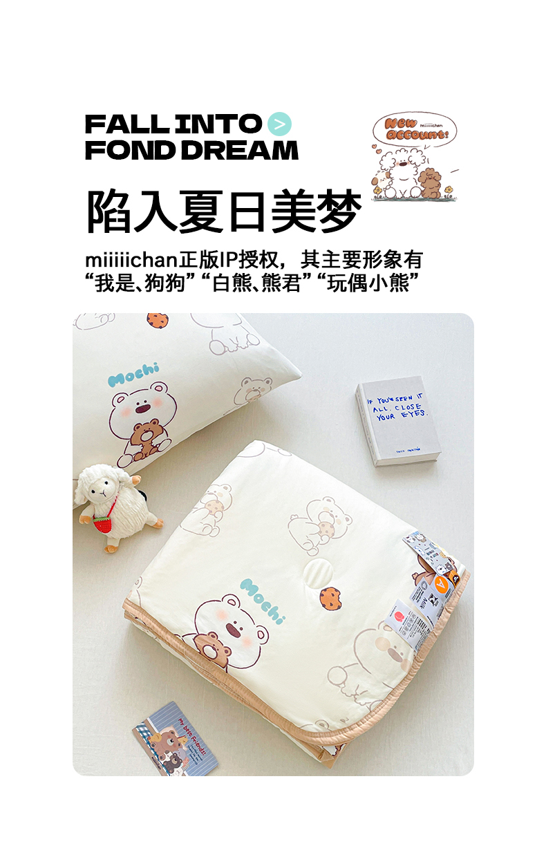 被子 > 夏被 > 桃子家居 2025新款A类高品质正版授权miiiiichan可爱卡通狗狗白熊女孩牛奶丝针织棉夏被夏凉被空调被 针织棉miiiiichan-奶咖棕熊