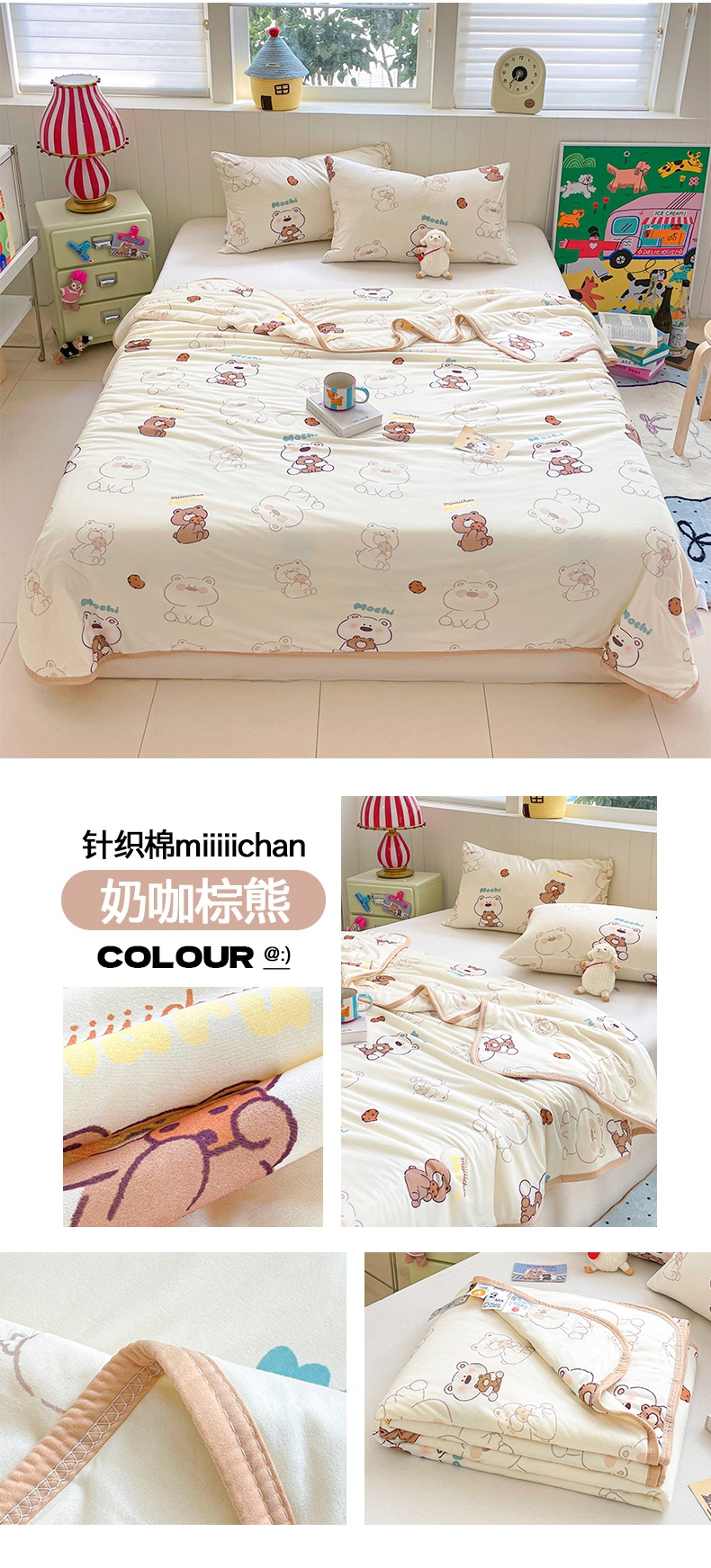 桃子家居 2025新款A类高品质正版授权miiiiichan可爱卡通狗狗白熊女孩牛奶丝针织棉夏被夏凉被空调被 针织棉miiiiichan-奶咖棕熊