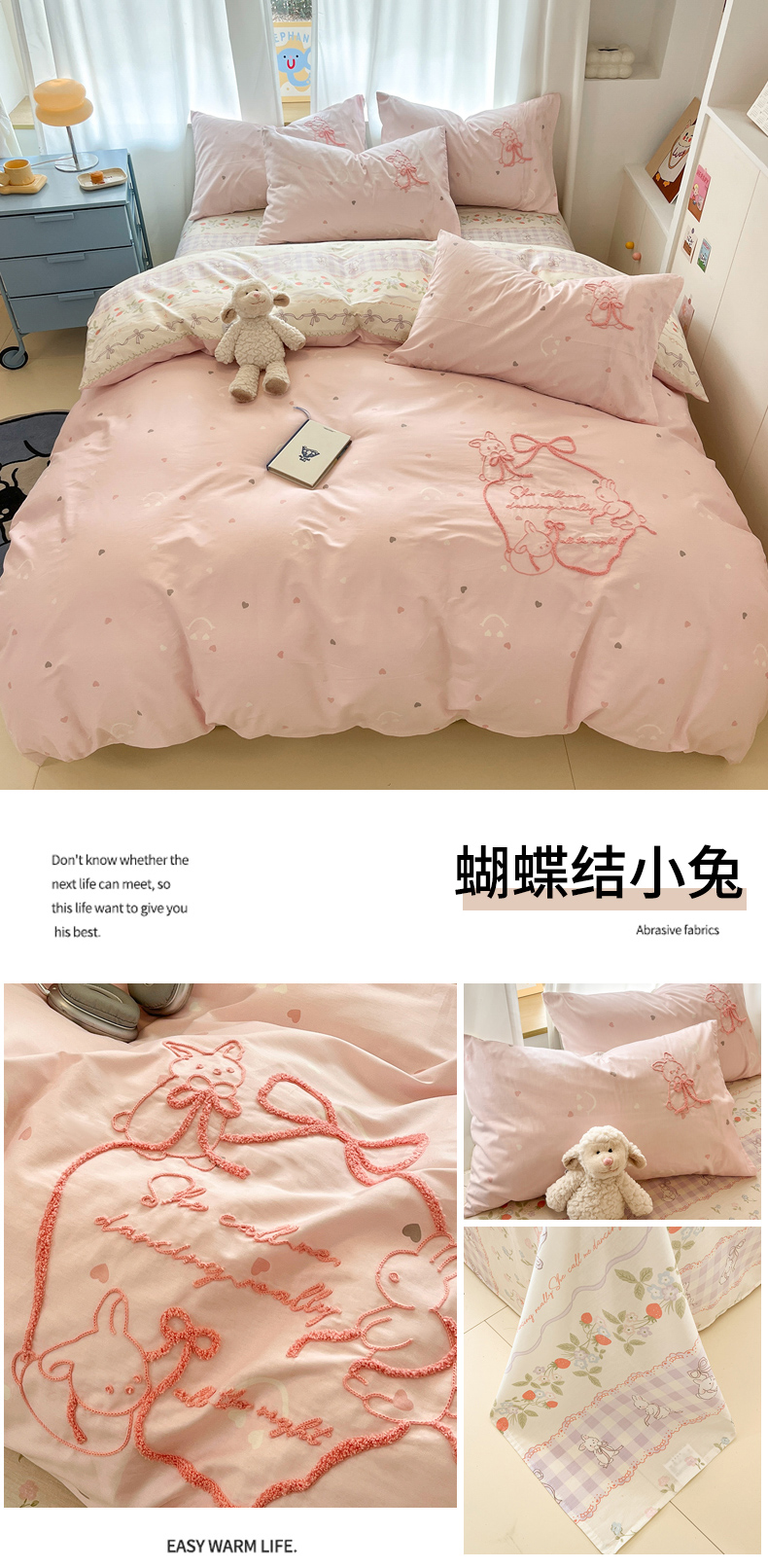 商品名称:沐辰 2025新款13372全棉毛巾绣四件套 蝴蝶结小兔