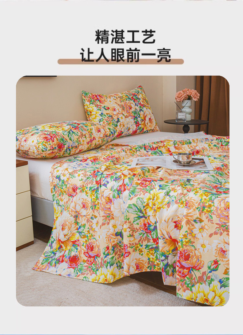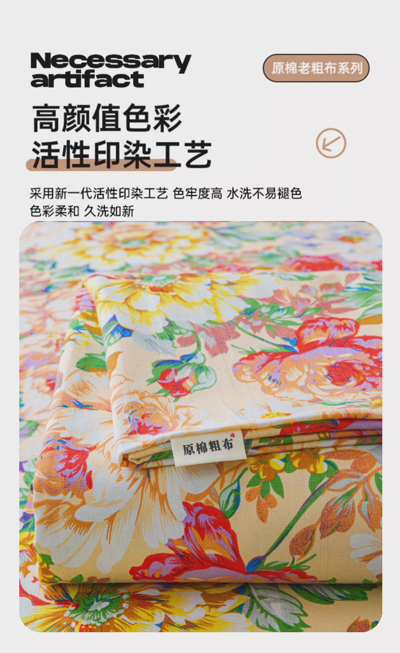 • 91家纺网 家纺一手货源 找家纺 2025新款原棉老粗布床单混纺含棉-床单 L盛开
