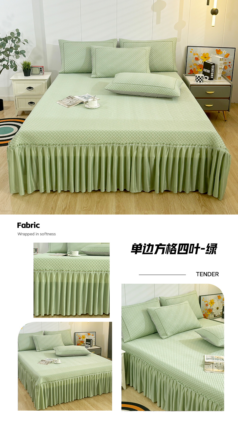 (总)伊而梦蚊帐 2025新款A类3D凉感冰豆豆床裙款单边四叶草凉席席子,四叶草-粉三件套,四叶草-灰三件套,四叶草-蓝三件套,四叶草-绿三件套