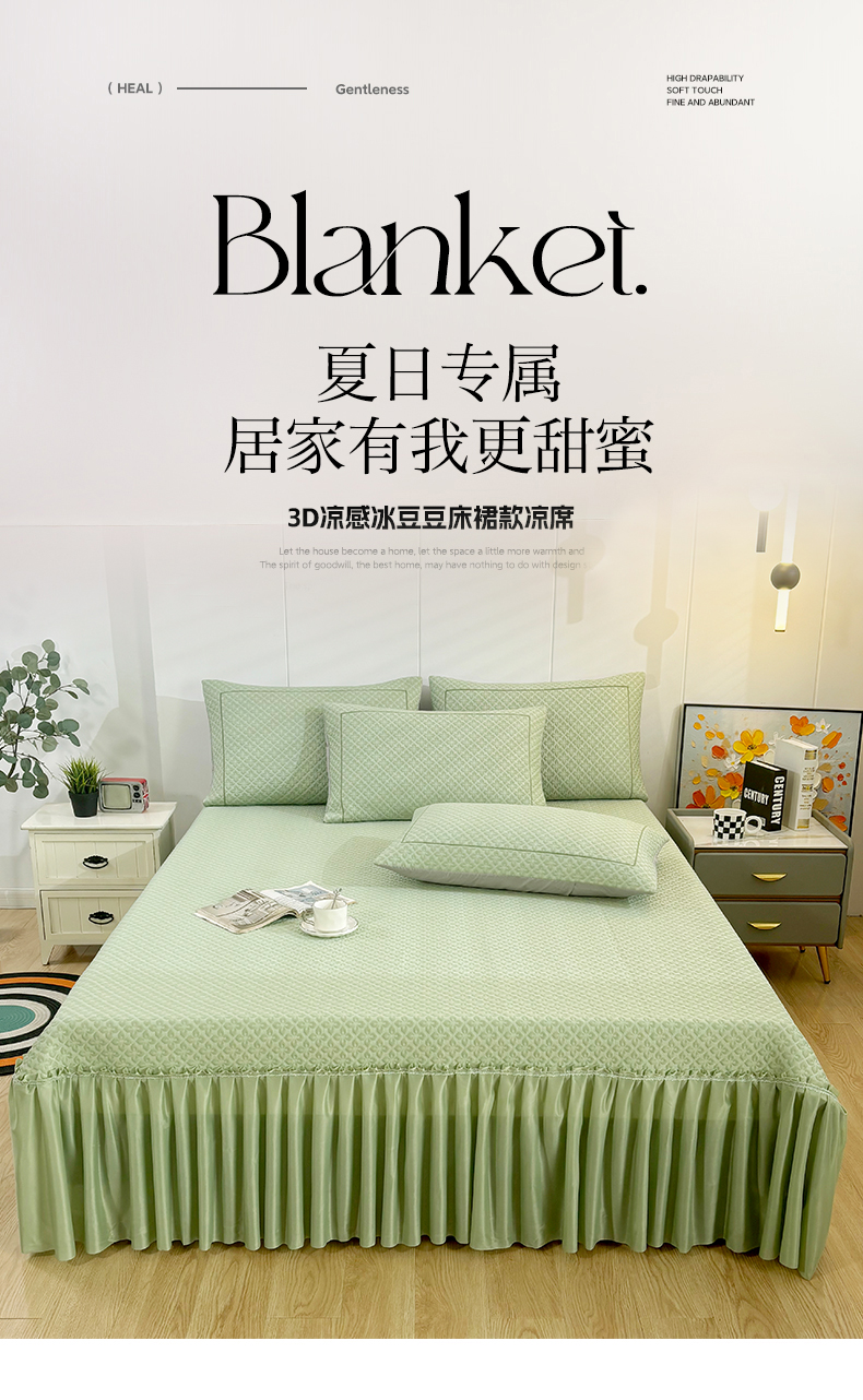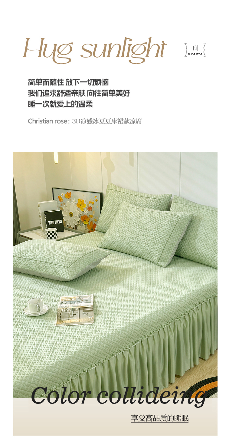(总)伊而梦 2024新款A类凉感冰豆豆床裙席-清欢,清欢-灰,清欢-粉,清欢-绿,清欢-蓝
