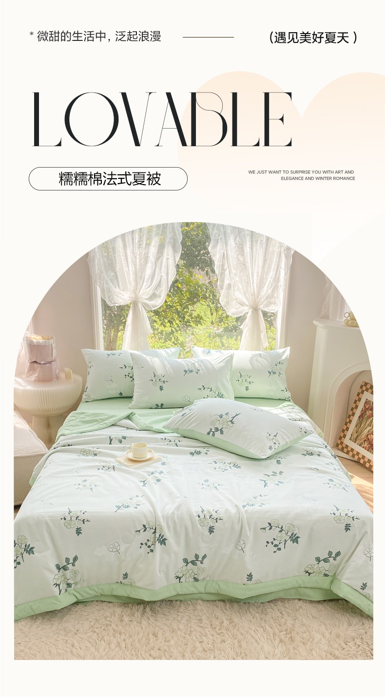 当前位置: 91家纺网 > 商品网购 > 床品套件 > 四件套 > 夏被四件套 > 爱彼家纺 2025新款小碎花水洗棉法式夏被四件套 糯糯棉法式夏被-花意恋