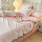 (总)艾裙海 2025新款蕾丝边牛奶绒床盖四件套,花间兔,米奇妹妹,朦胧格灰兰,花漾-紫,花间兔-绿,梦想家-绿,几何-灰,南瓜派-兰,樱桃之恋,七彩叶子
