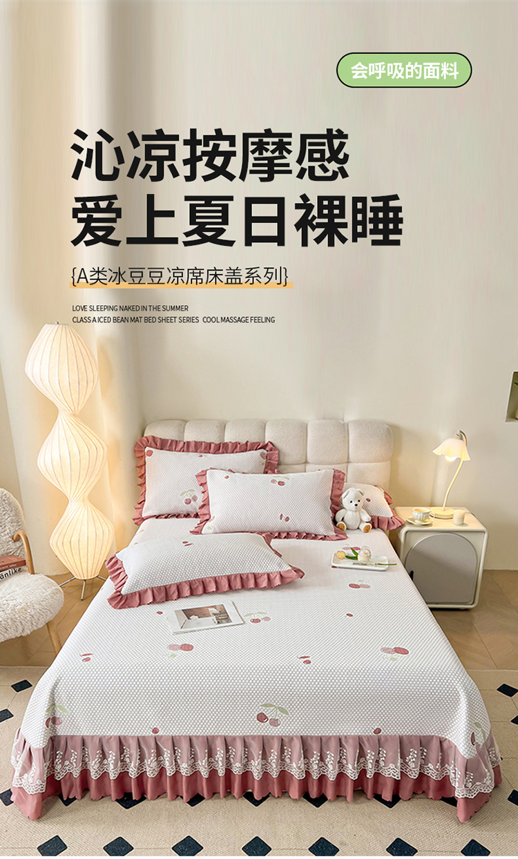 当前位置: 91家纺网 > 商品网购 > 床上用品 > 凉席 > 冰丝席 > 2025新款A类冰豆豆提花凉席床盖 床盖款-樱桃-豆沙