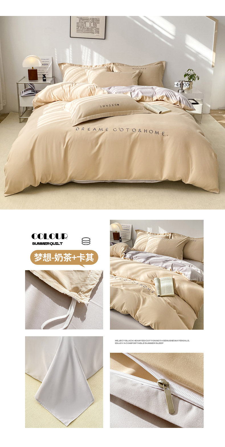 商品名称:芷凡家纺 2025新款水洗磨毛刺绣四件套-梦想 梦想-奶茶+卡其
